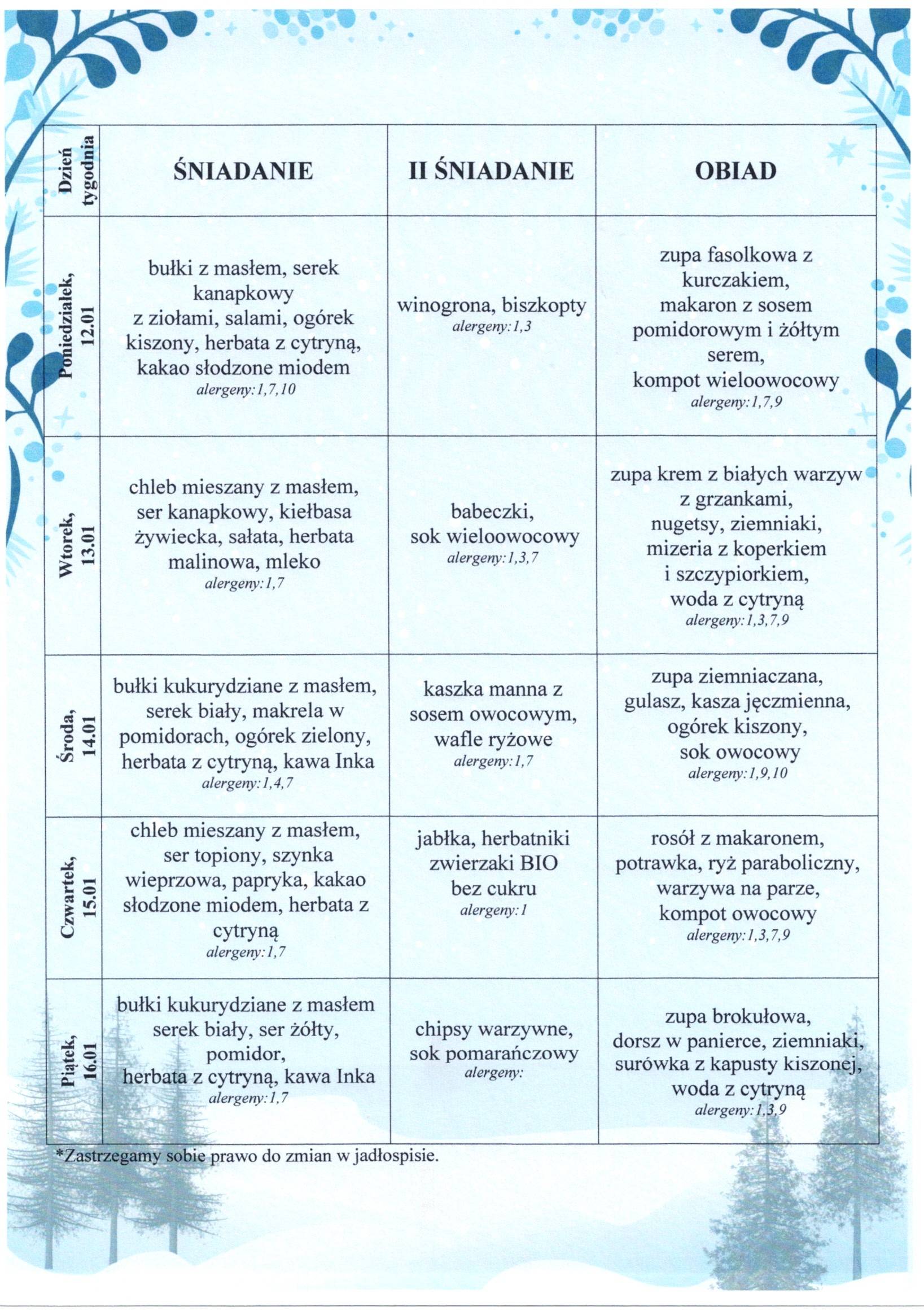 Zastrzegamy sobie prawo do zmian w jadłospisie.