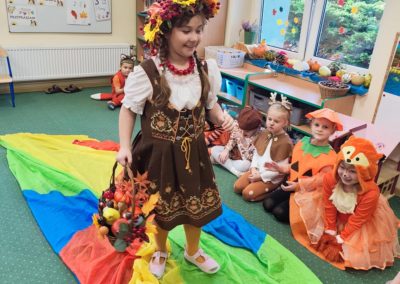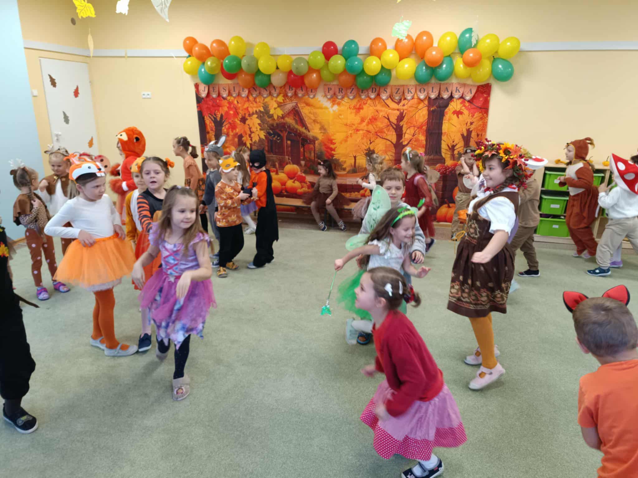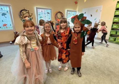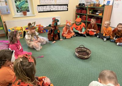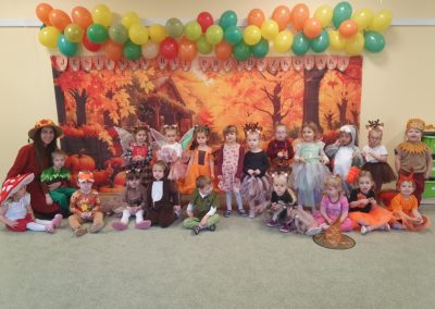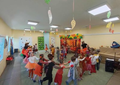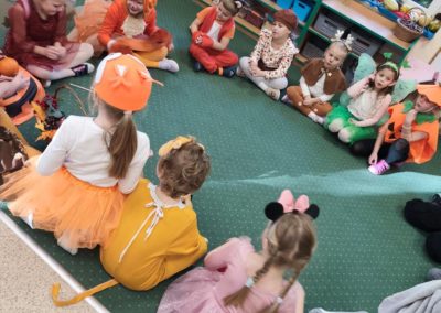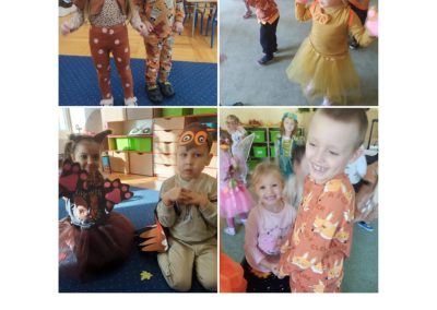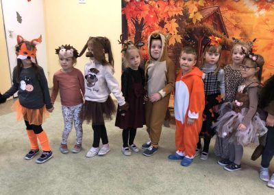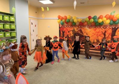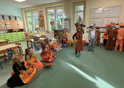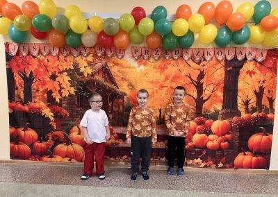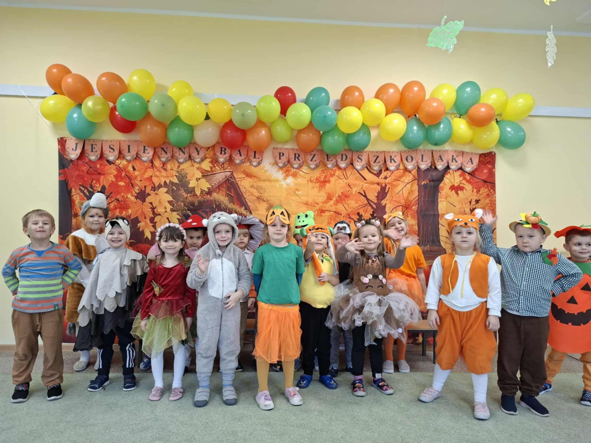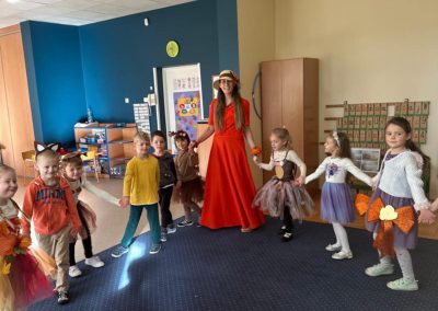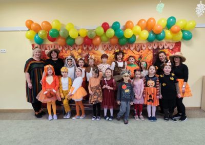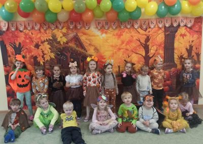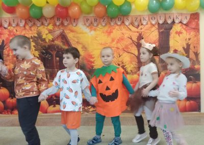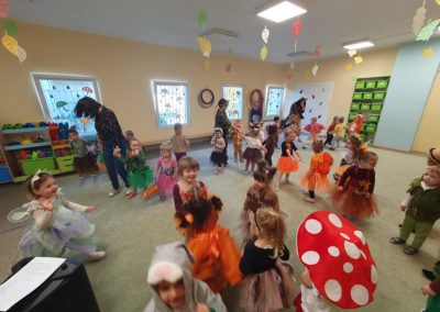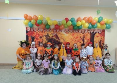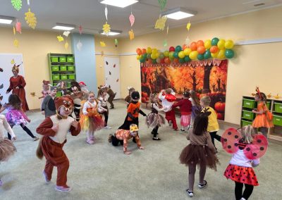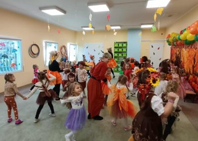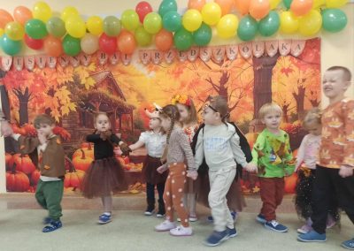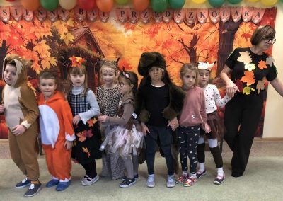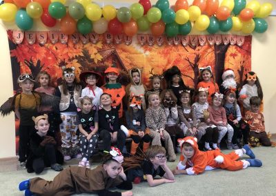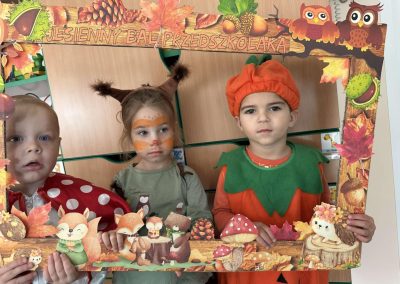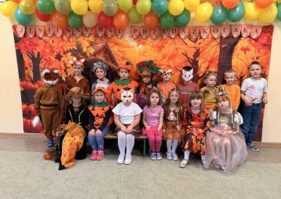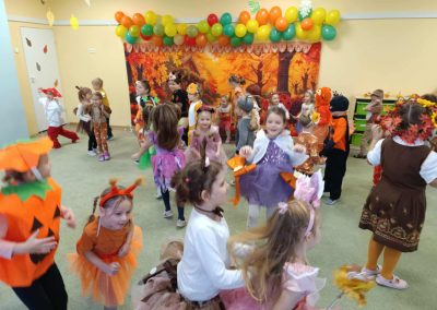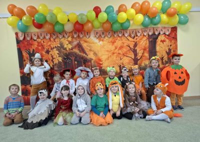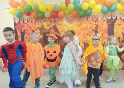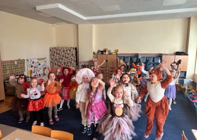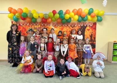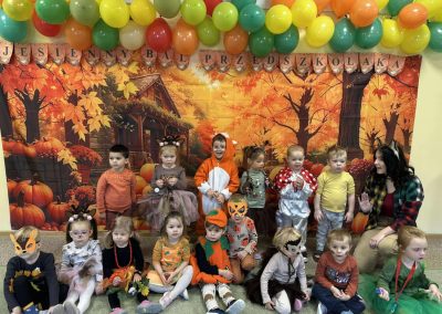 Jesienny Bal Przedszkolaka, który odbył się 29 października przyniósł dzieciom mnóstwo zabawy i niezapomnianych wrażeń. Sale zamieniły się w krainy pełne jesiennych barw, a każdy przedszkolak z dumą prezentował swój strój. Wśród uczestników można było spotkać wesołe krasnoludki, leśne zwierzątka, grzybki, wirujące listki. Były wspólne tańce, rozmaite konkursy i zabawy ruchowe. Radości, śmiechu i energii nie brakowało! Na zakończenie każdy przedszkolak otrzymał pamiątkowy dyplom oraz drobny upominek. Był to dzień pełen ciepła, muzyki i jesiennej magii.