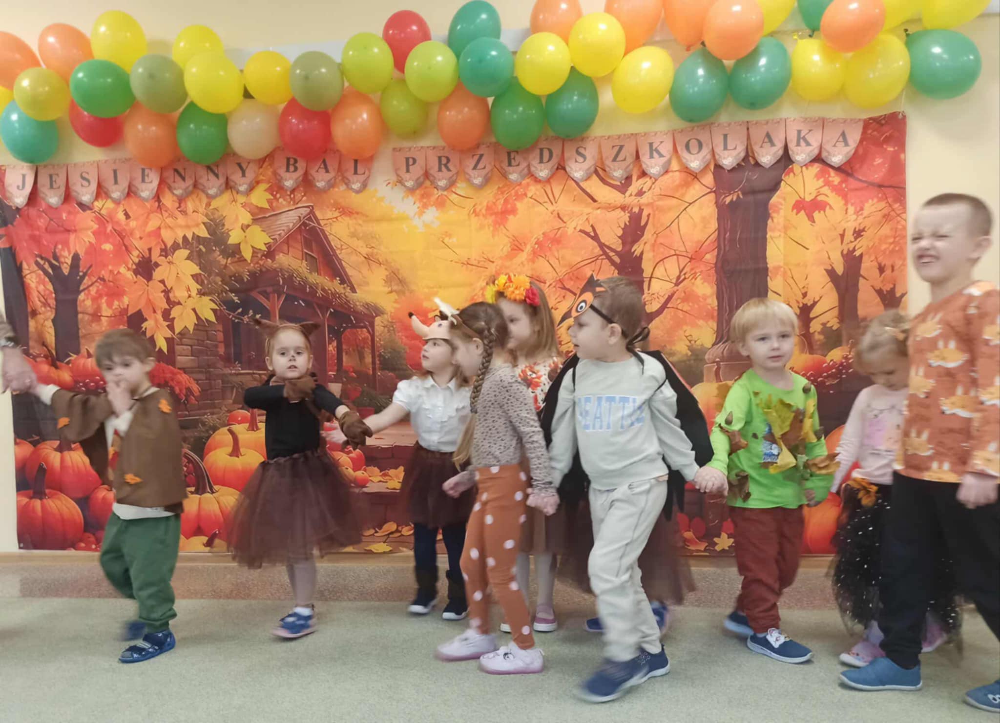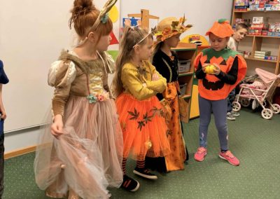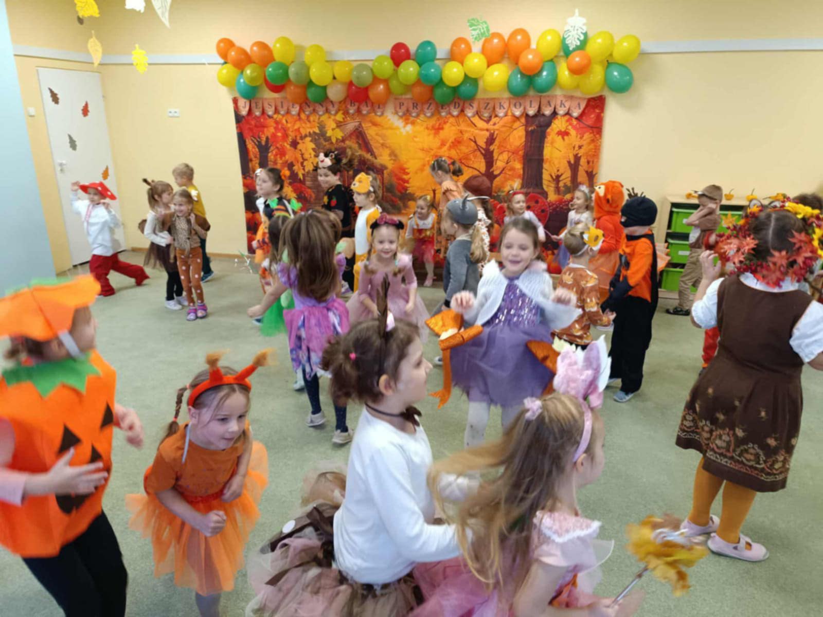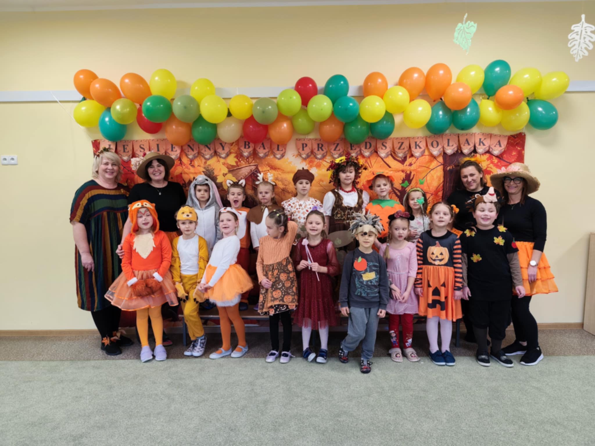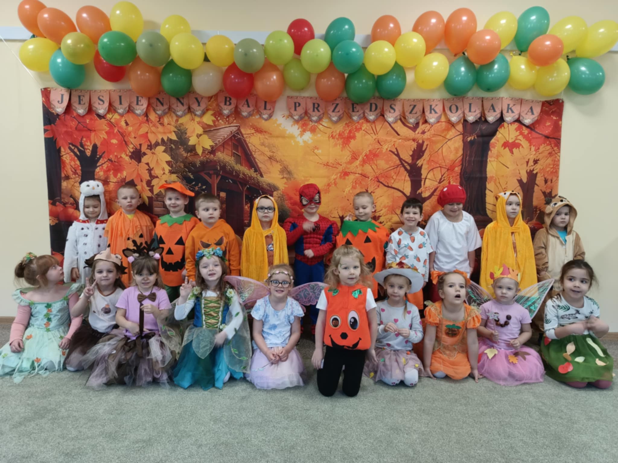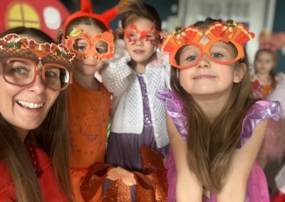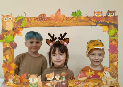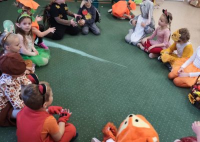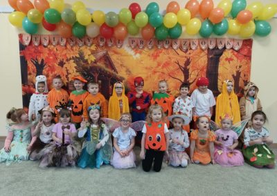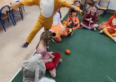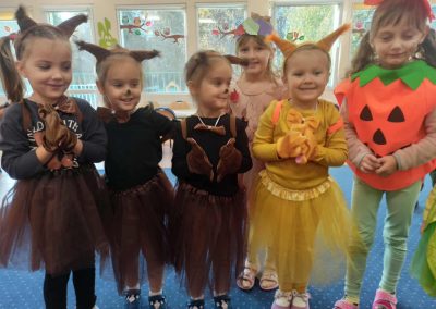 Jesienny Bal Przedszkolaka, który odbył się 29 października przyniósł dzieciom mnóstwo zabawy i niezapomnianych wrażeń. Sale zamieniły się w krainy pełne jesiennych barw, a każdy przedszkolak z dumą prezentował swój strój. Wśród uczestników można było spotkać wesołe krasnoludki, leśne zwierzątka, grzybki, wirujące listki. Były wspólne tańce, rozmaite konkursy i zabawy ruchowe. Radości, śmiechu i energii nie brakowało! Na zakończenie każdy przedszkolak otrzymał pamiątkowy dyplom oraz drobny upominek. Był to dzień pełen ciepła, muzyki i jesiennej magii.