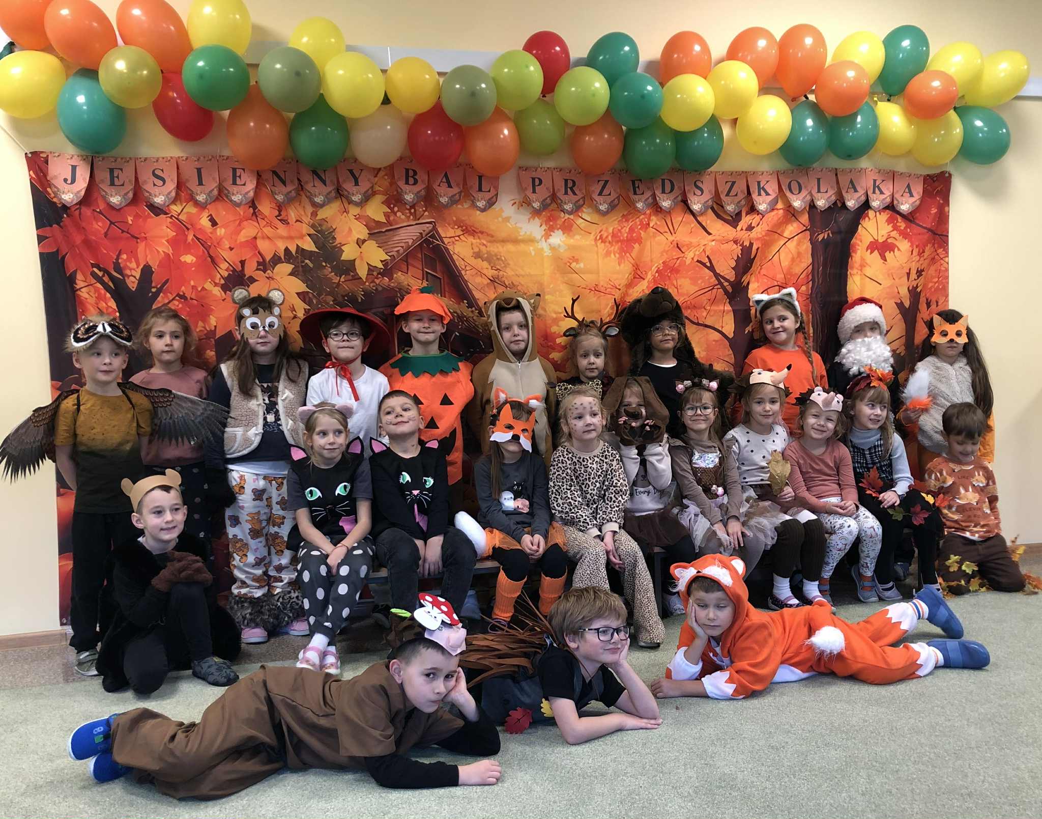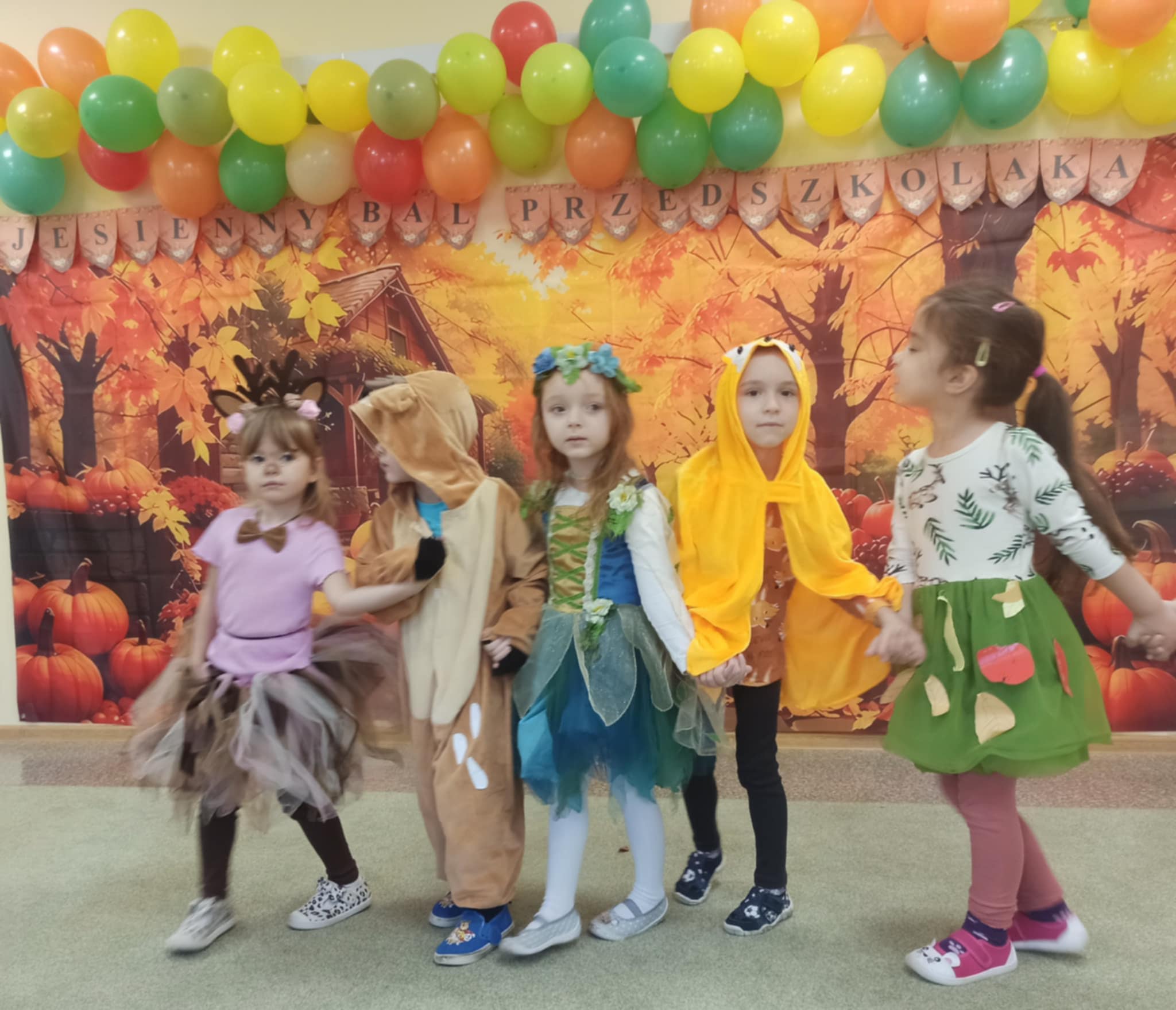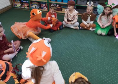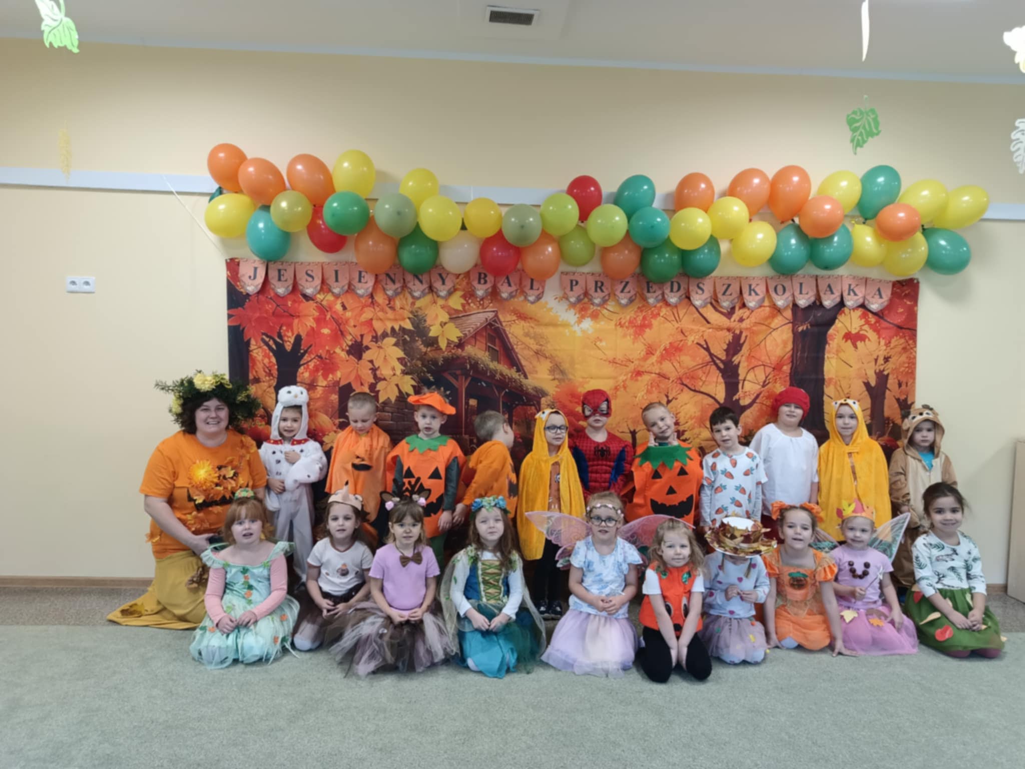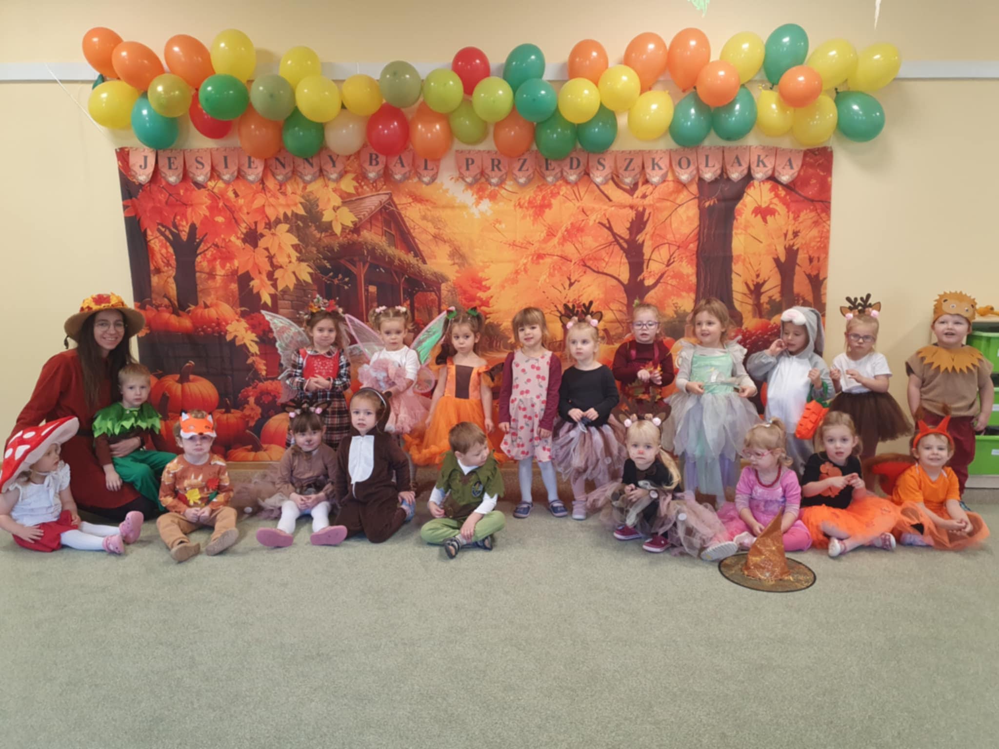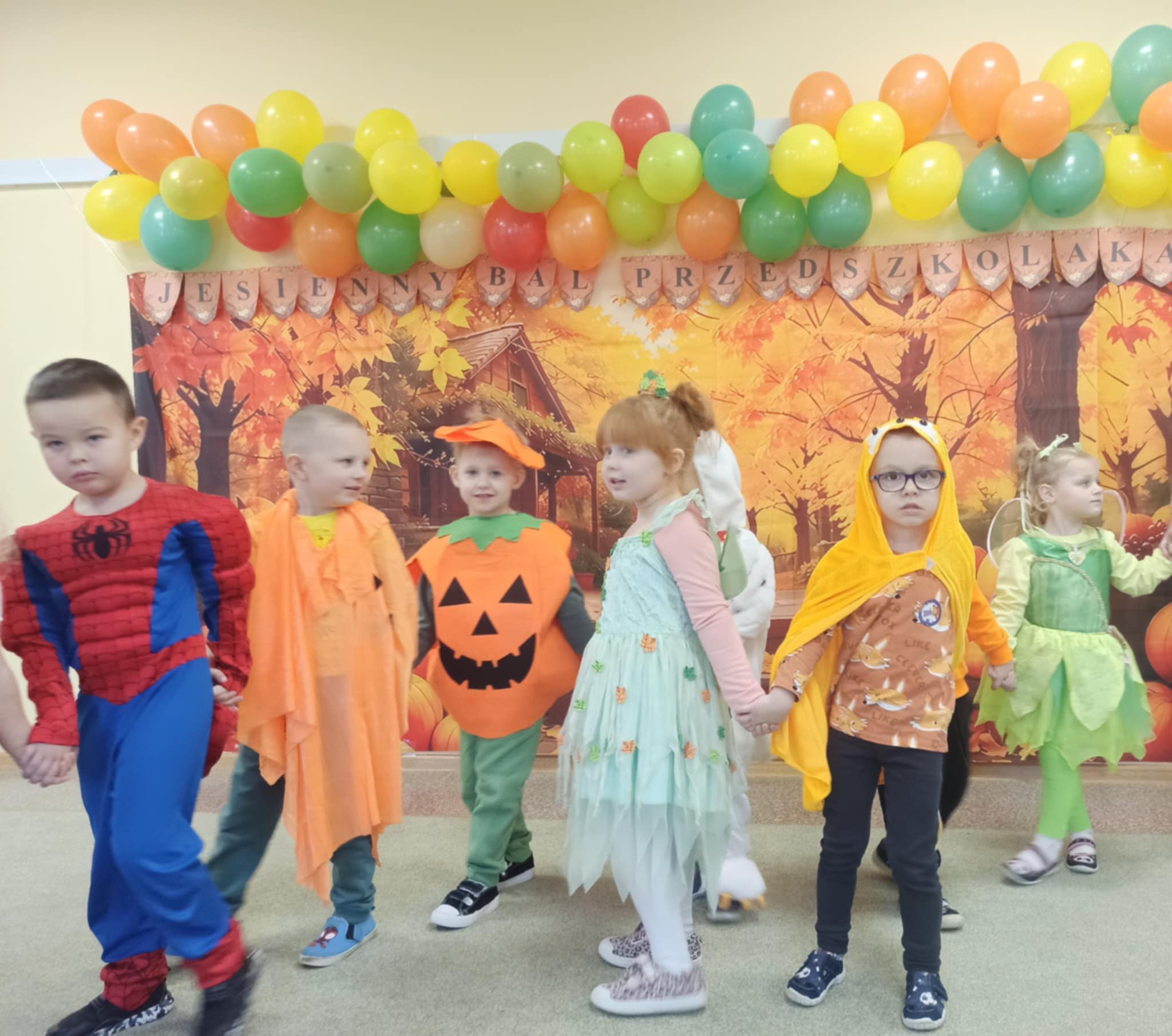 Jesienny Bal Przedszkolaka, który odbył się 29 października przyniósł dzieciom mnóstwo zabawy i niezapomnianych wrażeń. Sale zamieniły się w krainy pełne jesiennych barw, a każdy przedszkolak z dumą prezentował swój strój. Wśród uczestników można było spotkać wesołe krasnoludki, leśne zwierzątka, grzybki, wirujące listki. Były wspólne tańce, rozmaite konkursy i zabawy ruchowe. Radości, śmiechu i energii nie brakowało! Na zakończenie każdy przedszkolak otrzymał pamiątkowy dyplom oraz drobny upominek. Był to dzień pełen ciepła, muzyki i jesiennej magii.