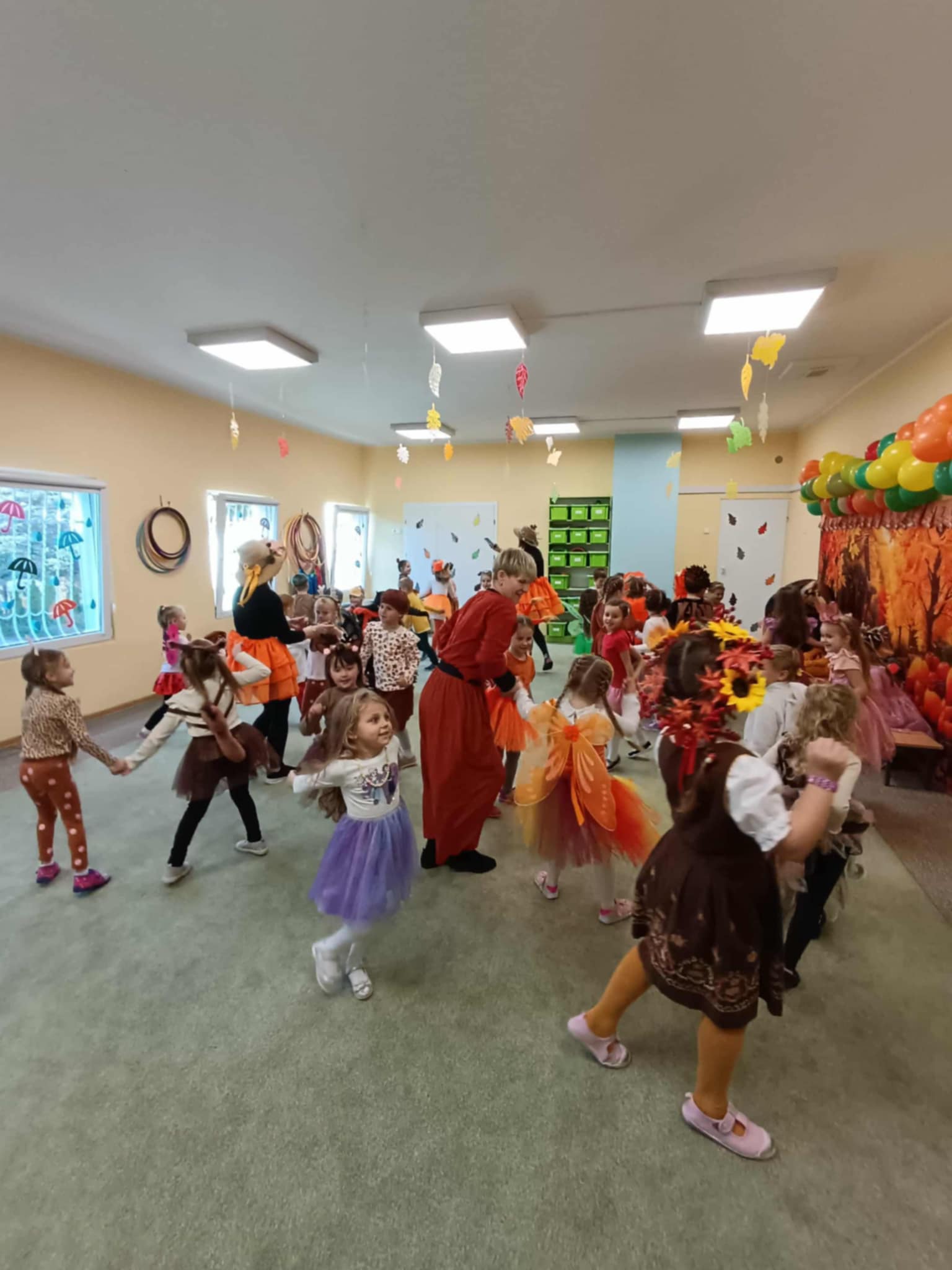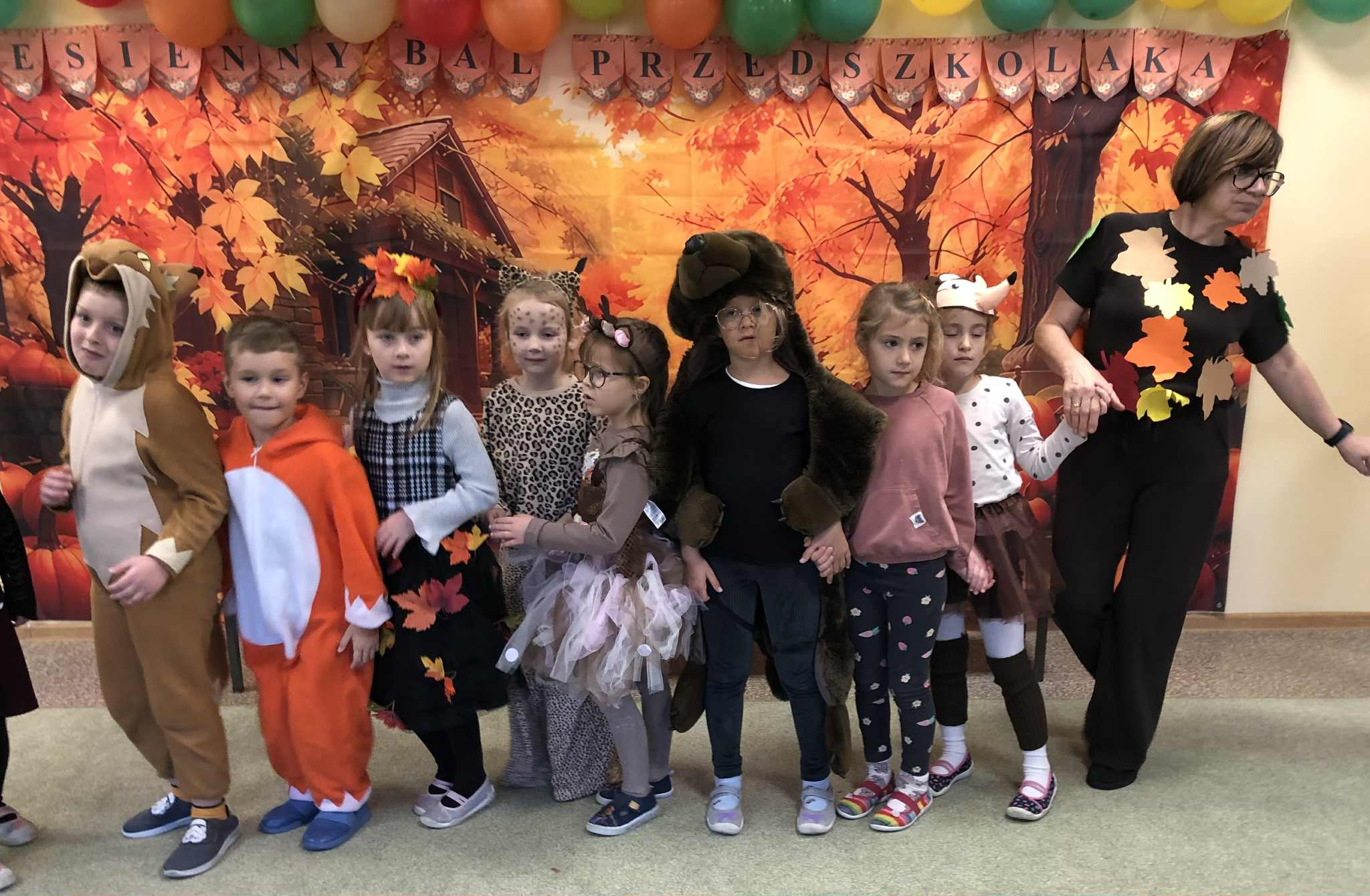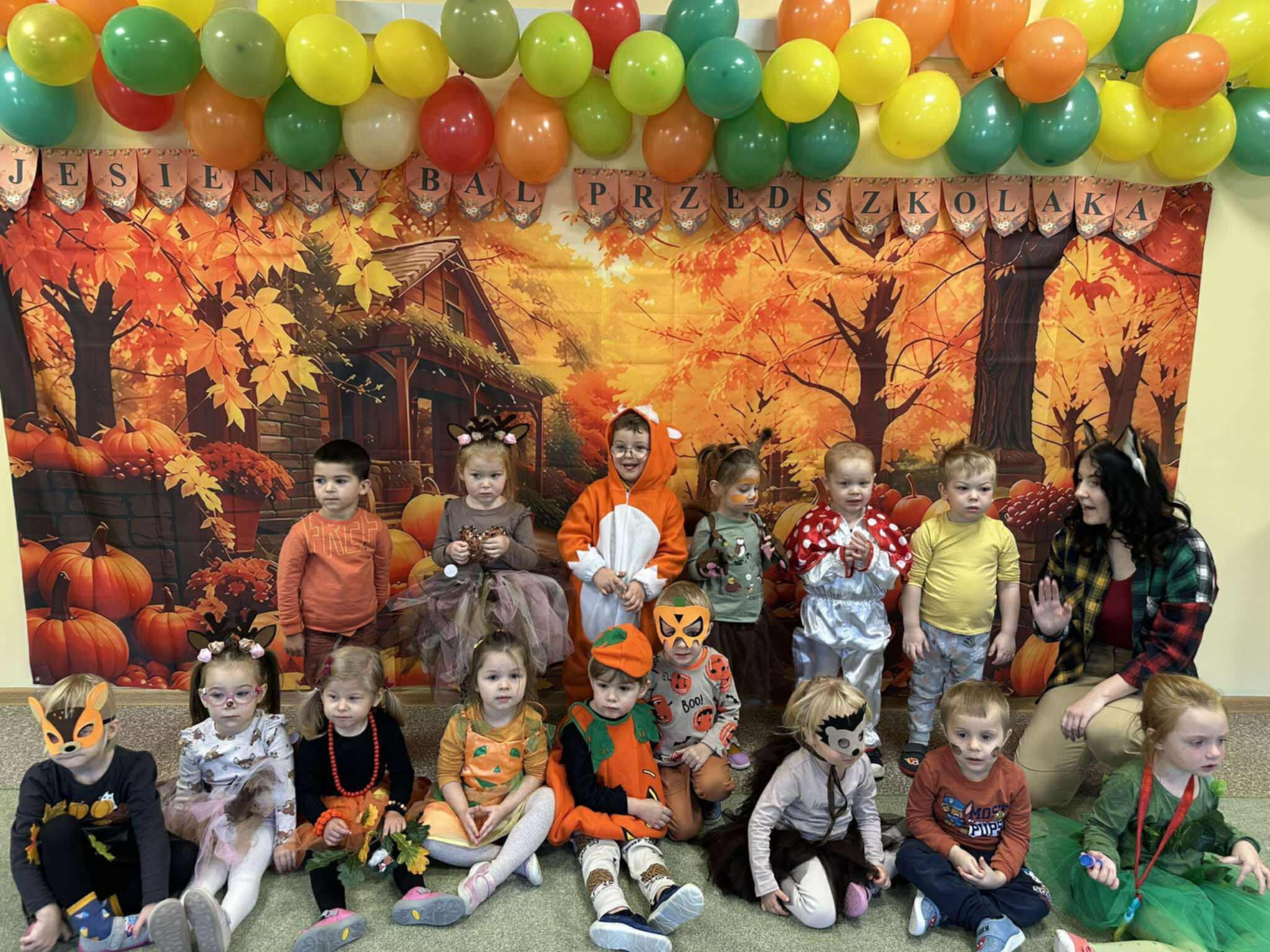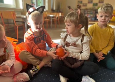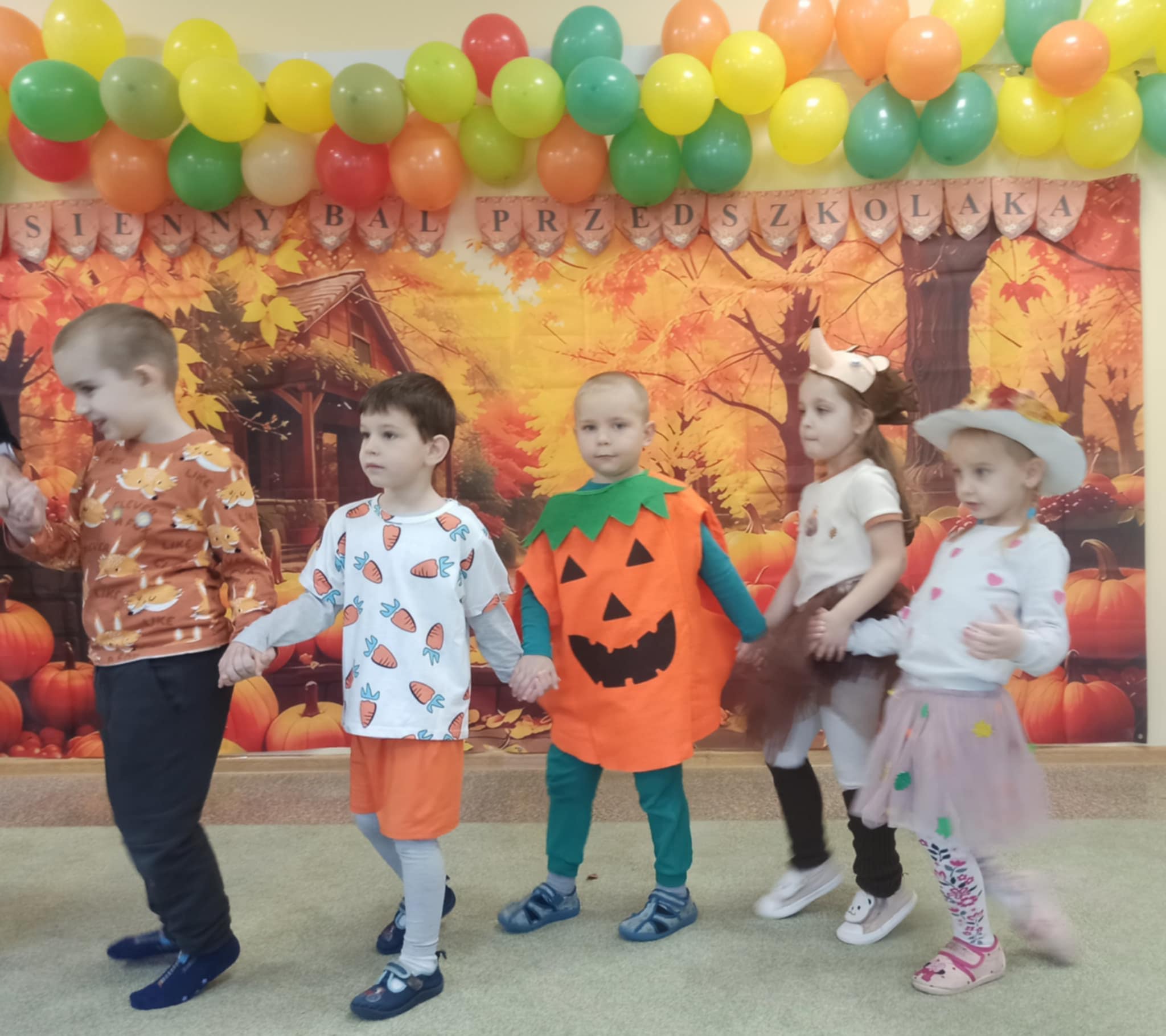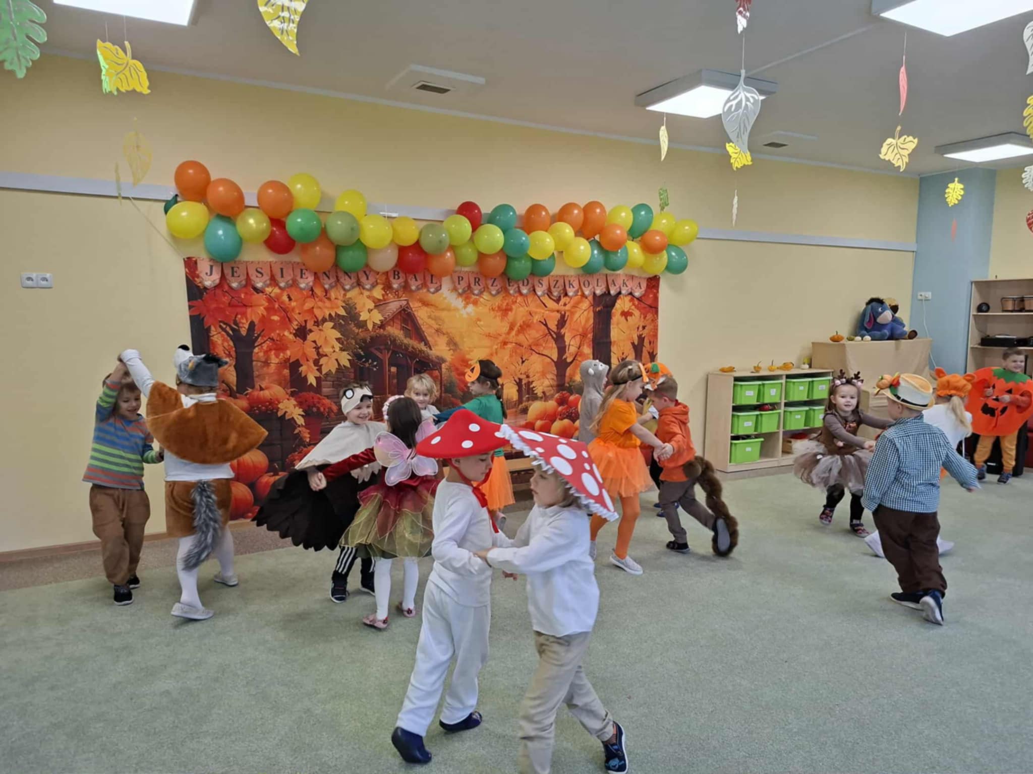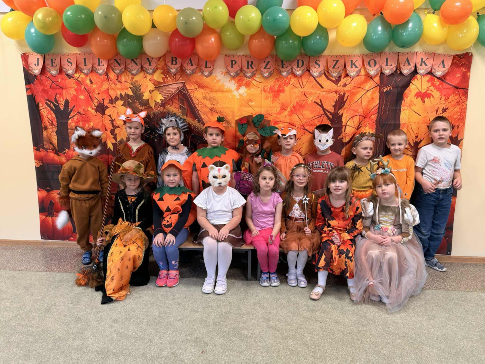 Jesienny Bal Przedszkolaka, który odbył się 29 października przyniósł dzieciom mnóstwo zabawy i niezapomnianych wrażeń. Sale zamieniły się w krainy pełne jesiennych barw, a każdy przedszkolak z dumą prezentował swój strój. Wśród uczestników można było spotkać wesołe krasnoludki, leśne zwierzątka, grzybki, wirujące listki. Były wspólne tańce, rozmaite konkursy i zabawy ruchowe. Radości, śmiechu i energii nie brakowało! Na zakończenie każdy przedszkolak otrzymał pamiątkowy dyplom oraz drobny upominek. Był to dzień pełen ciepła, muzyki i jesiennej magii.