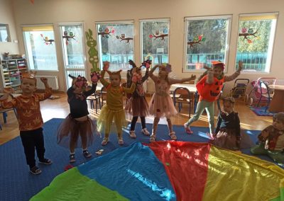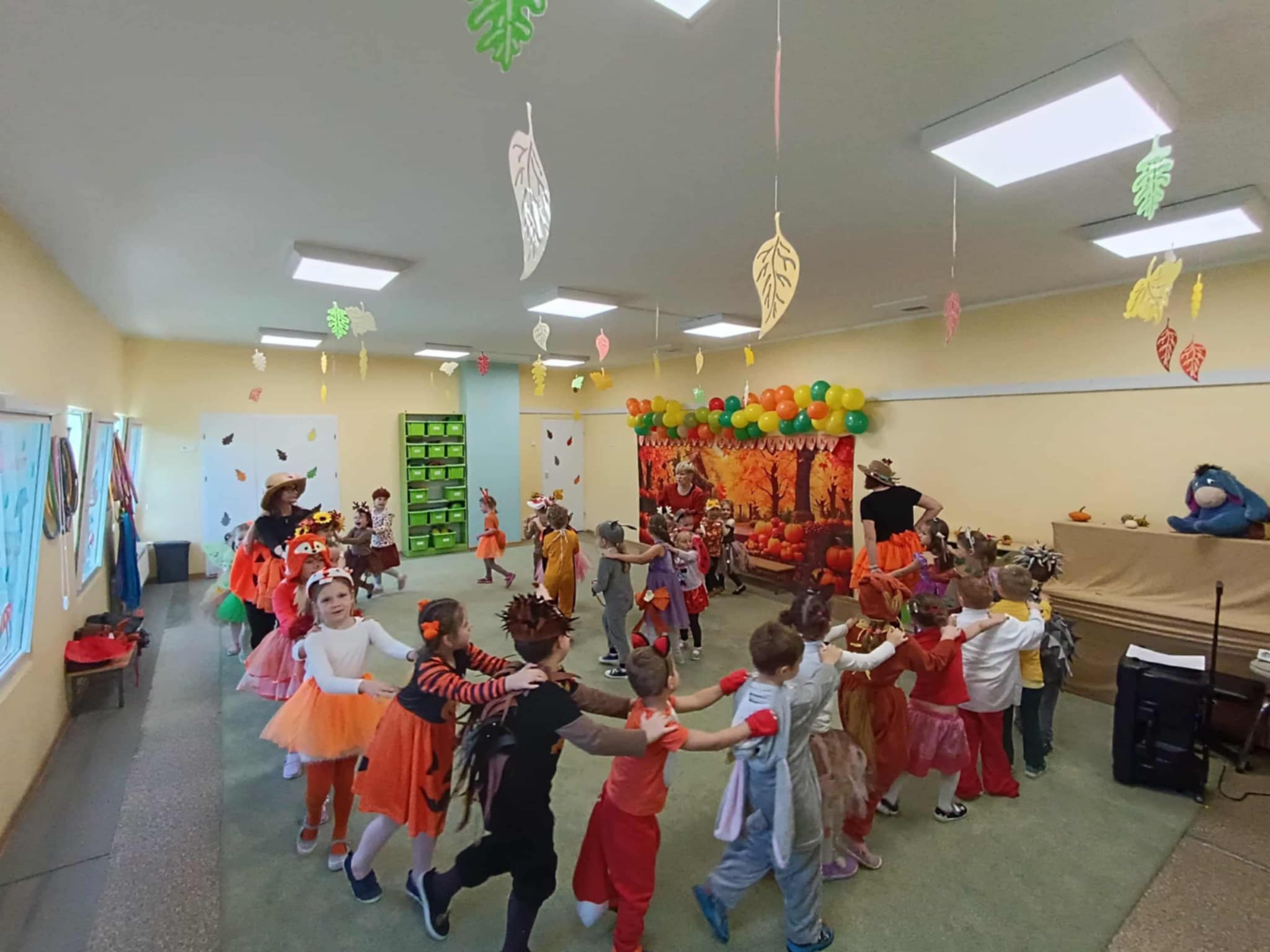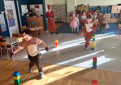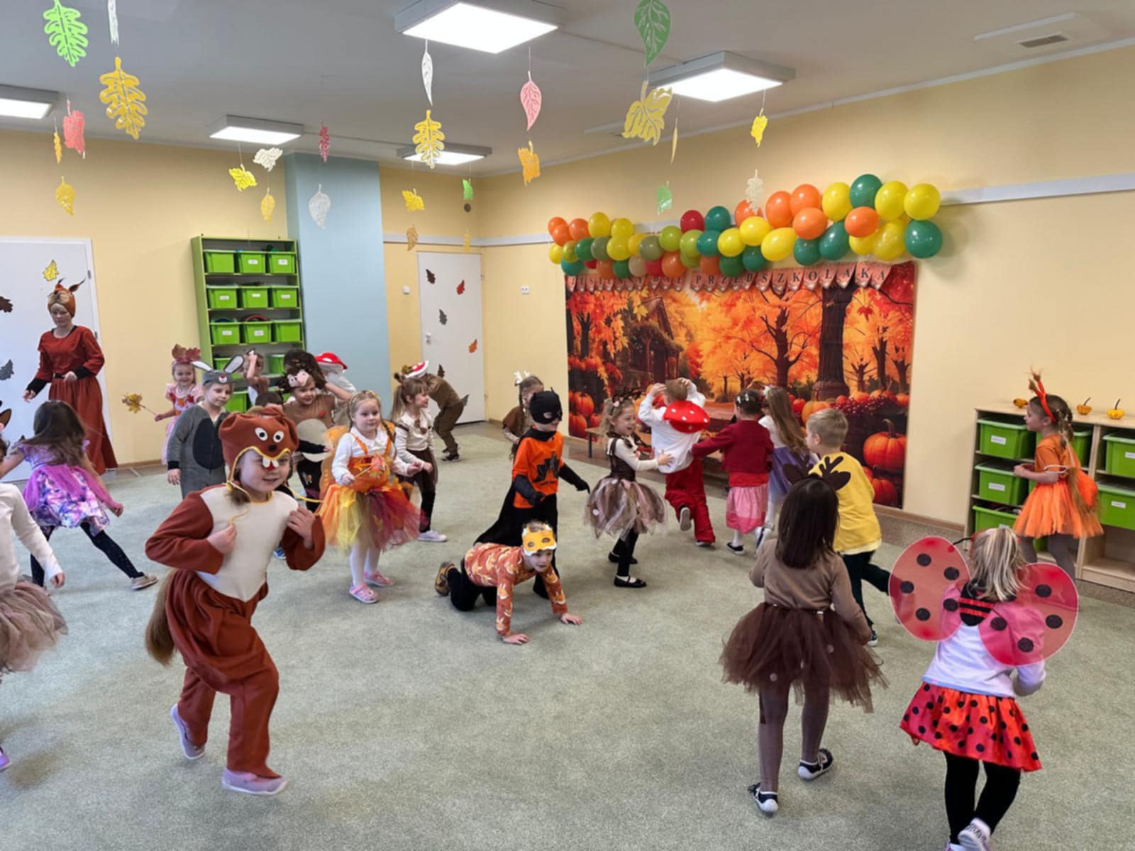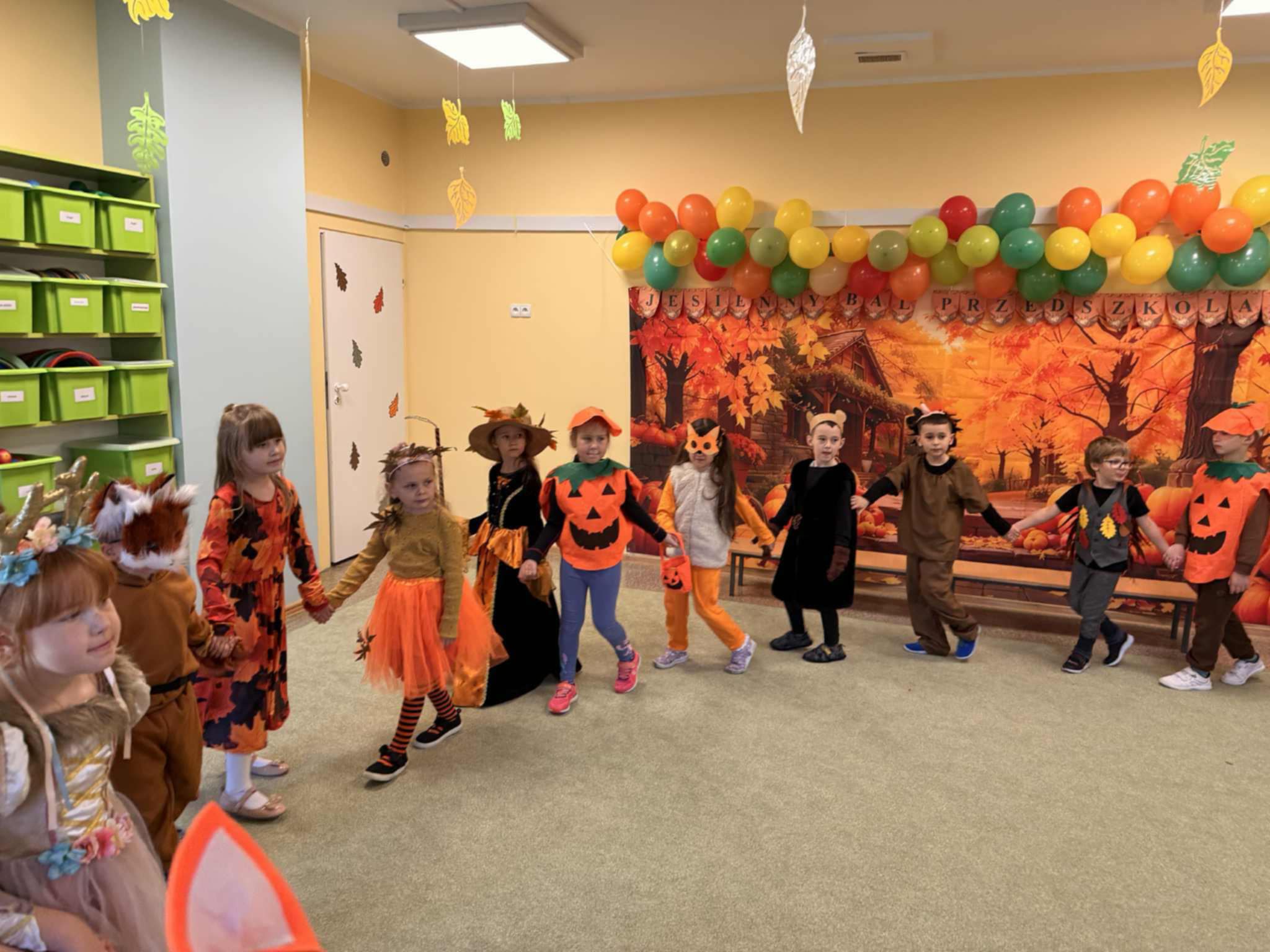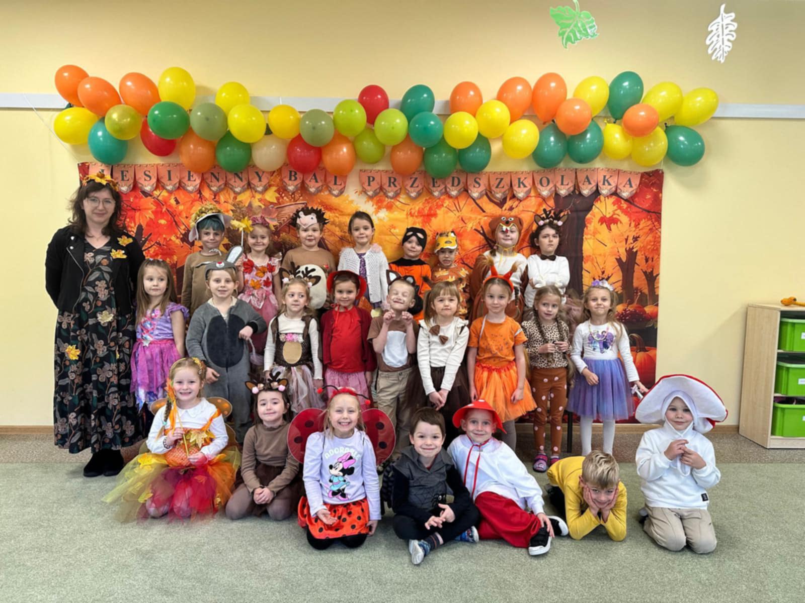 Jesienny Bal Przedszkolaka, który odbył się 29 października przyniósł dzieciom mnóstwo zabawy i niezapomnianych wrażeń. Sale zamieniły się w krainy pełne jesiennych barw, a każdy przedszkolak z dumą prezentował swój strój. Wśród uczestników można było spotkać wesołe krasnoludki, leśne zwierzątka, grzybki, wirujące listki. Były wspólne tańce, rozmaite konkursy i zabawy ruchowe. Radości, śmiechu i energii nie brakowało! Na zakończenie każdy przedszkolak otrzymał pamiątkowy dyplom oraz drobny upominek. Był to dzień pełen ciepła, muzyki i jesiennej magii.