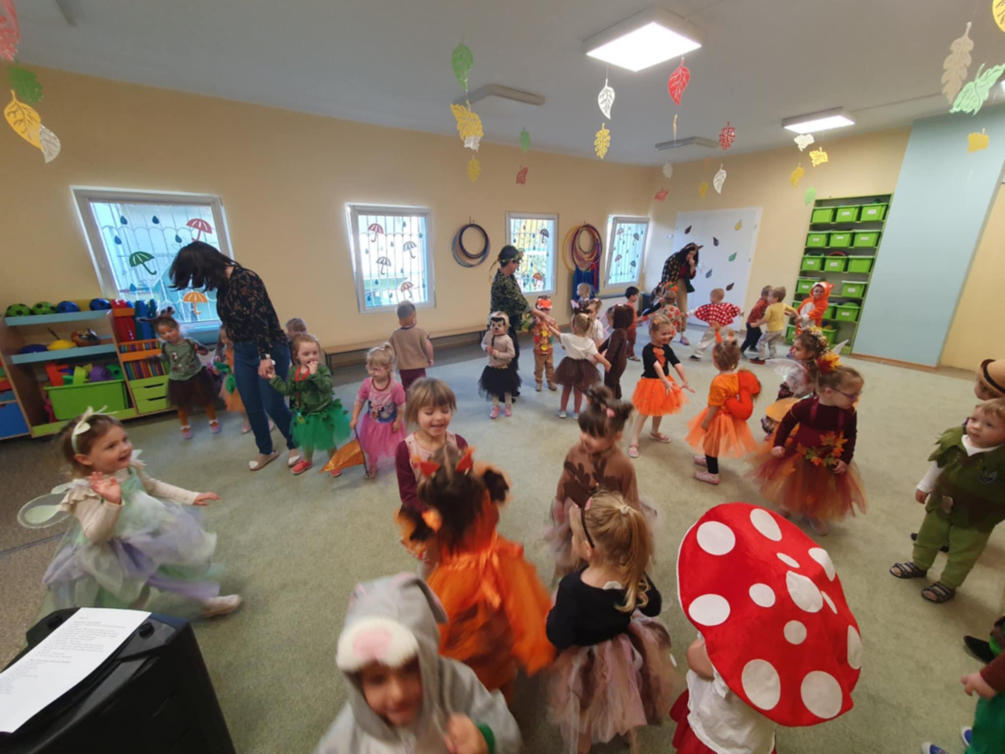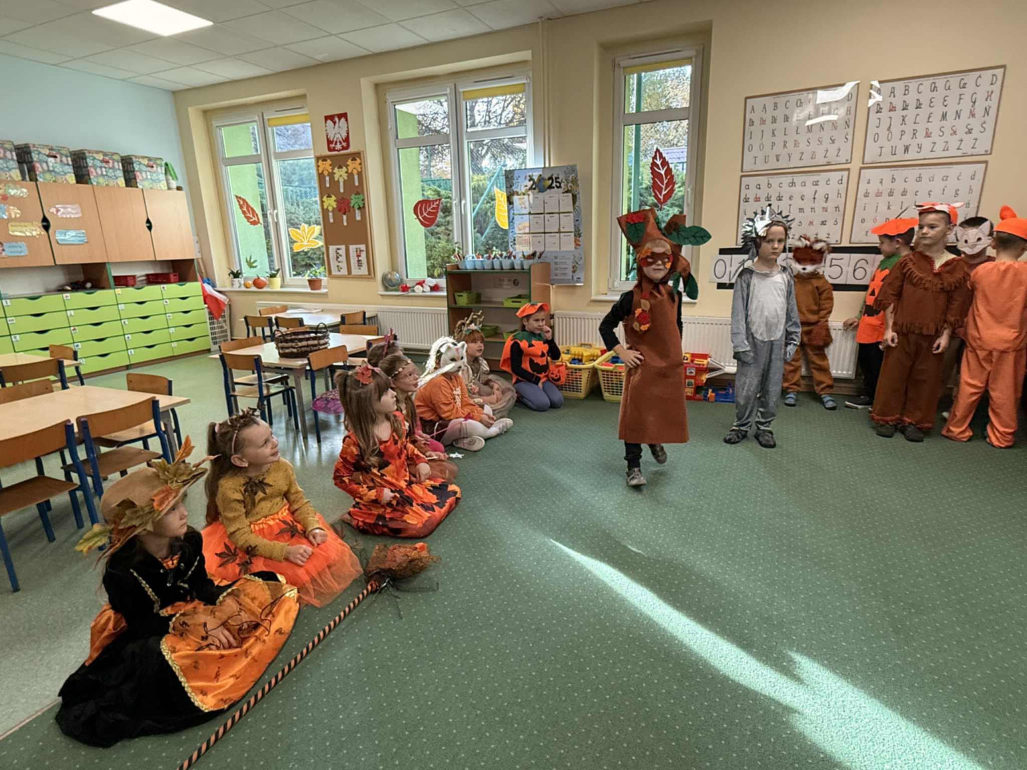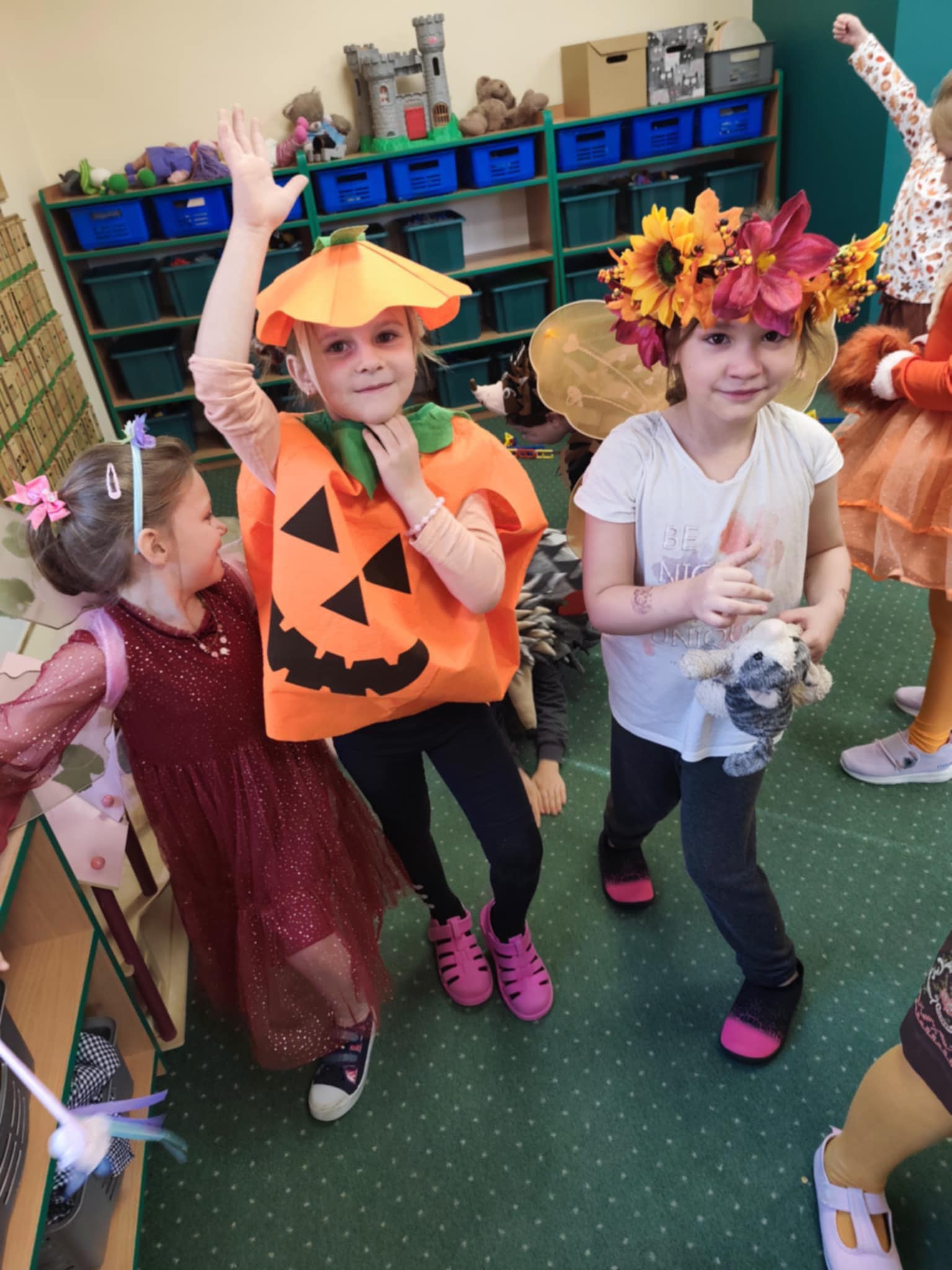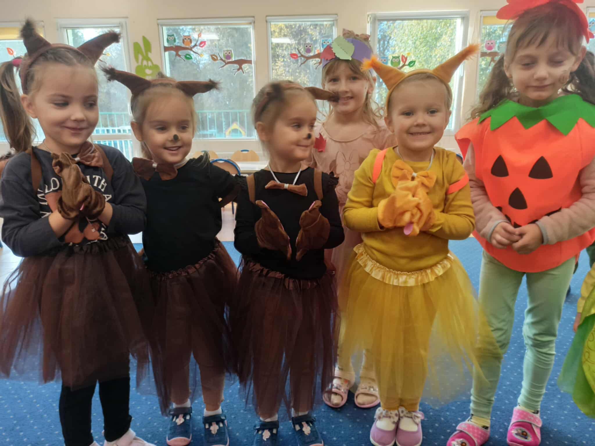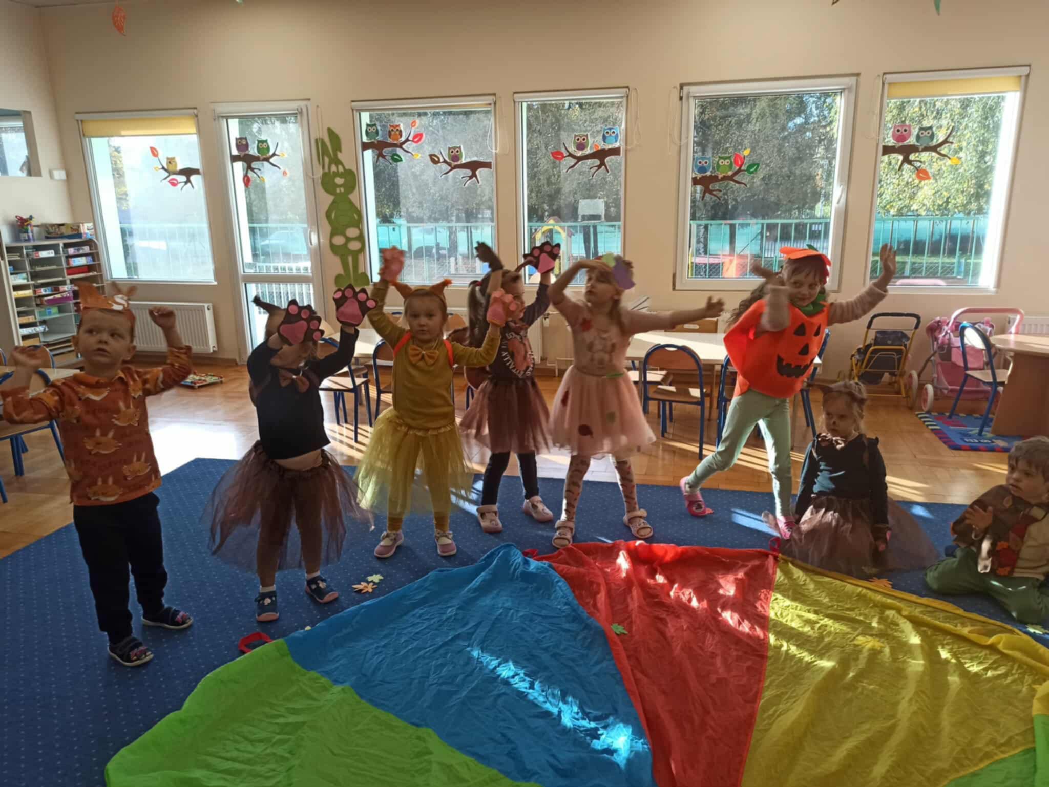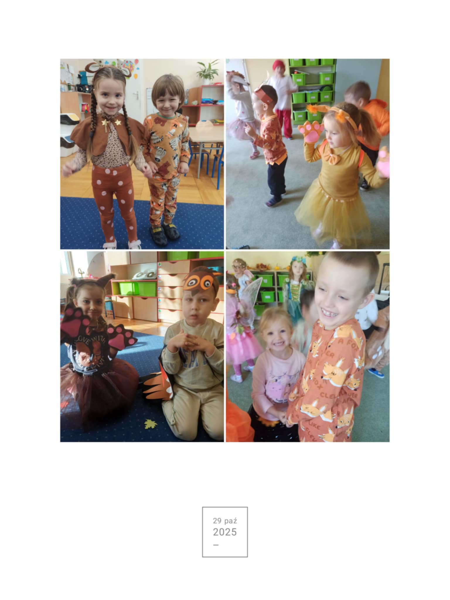 Jesienny Bal Przedszkolaka, który odbył się 29 października przyniósł dzieciom mnóstwo zabawy i niezapomnianych wrażeń. Sale zamieniły się w krainy pełne jesiennych barw, a każdy przedszkolak z dumą prezentował swój strój. Wśród uczestników można było spotkać wesołe krasnoludki, leśne zwierzątka, grzybki, wirujące listki. Były wspólne tańce, rozmaite konkursy i zabawy ruchowe. Radości, śmiechu i energii nie brakowało! Na zakończenie każdy przedszkolak otrzymał pamiątkowy dyplom oraz drobny upominek. Był to dzień pełen ciepła, muzyki i jesiennej magii.