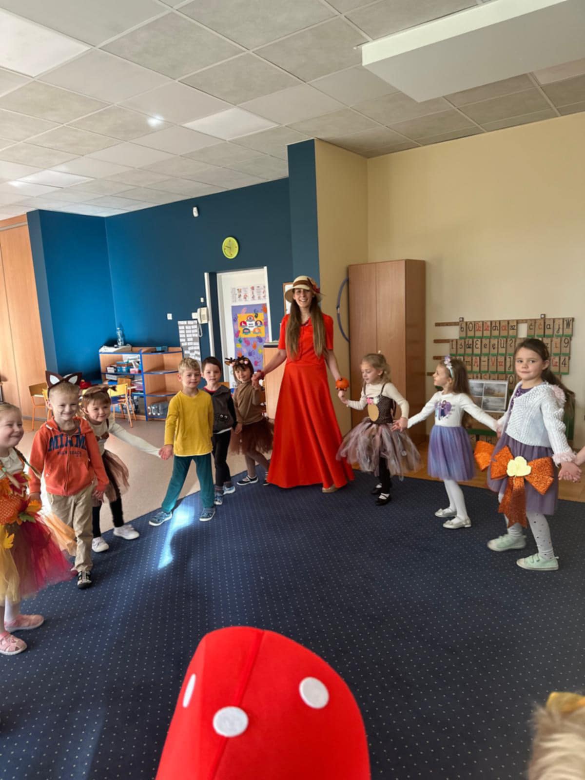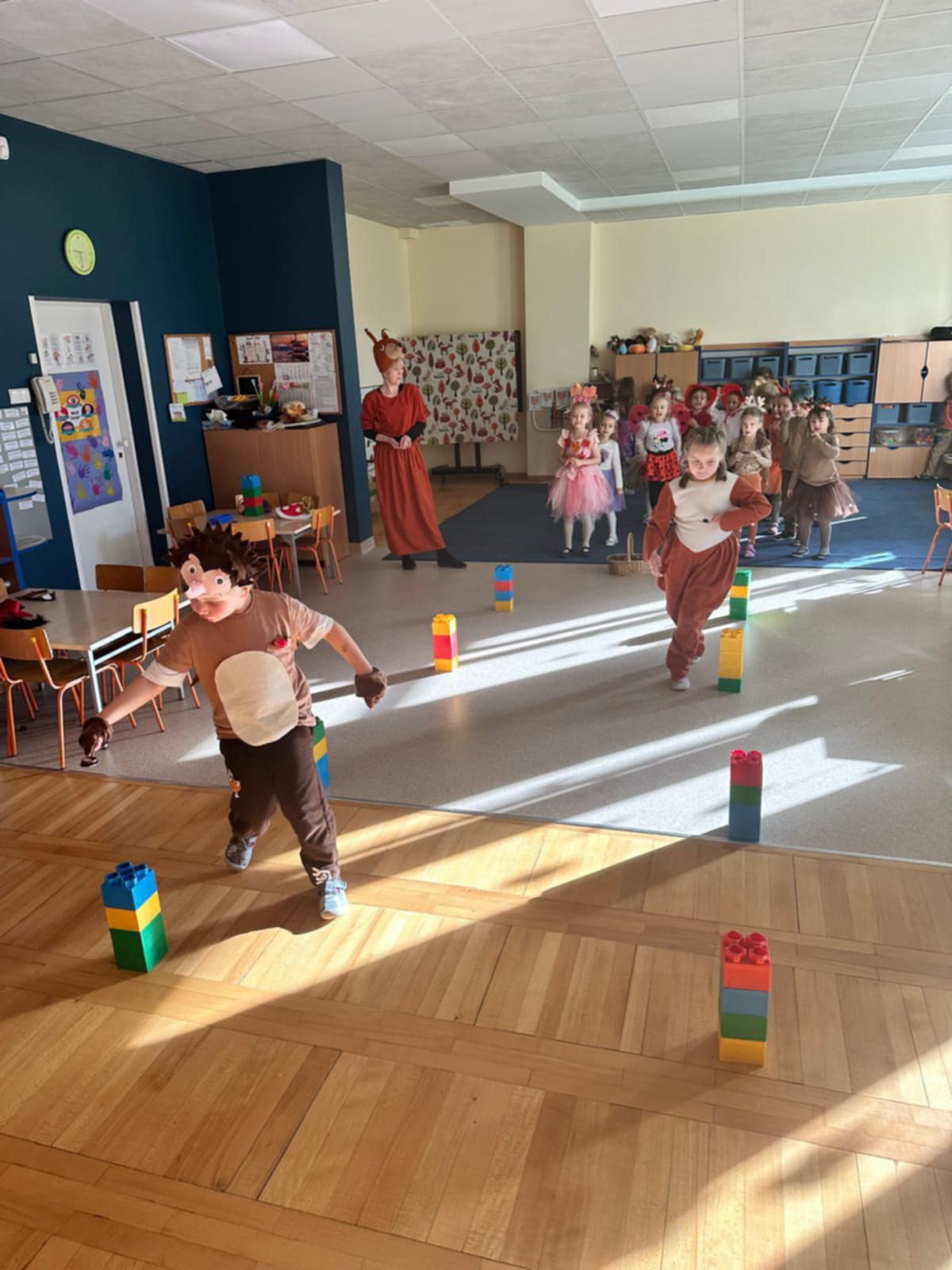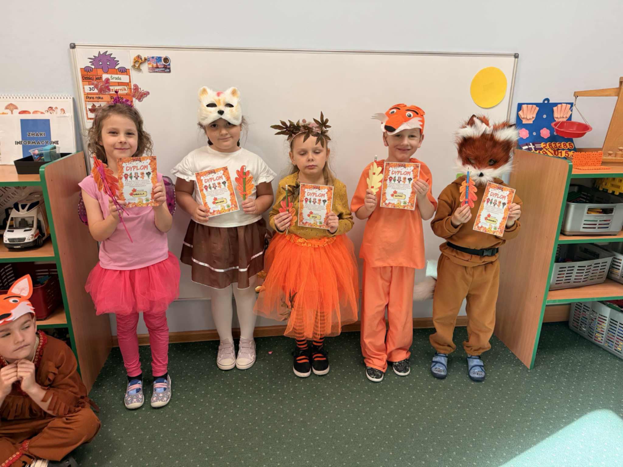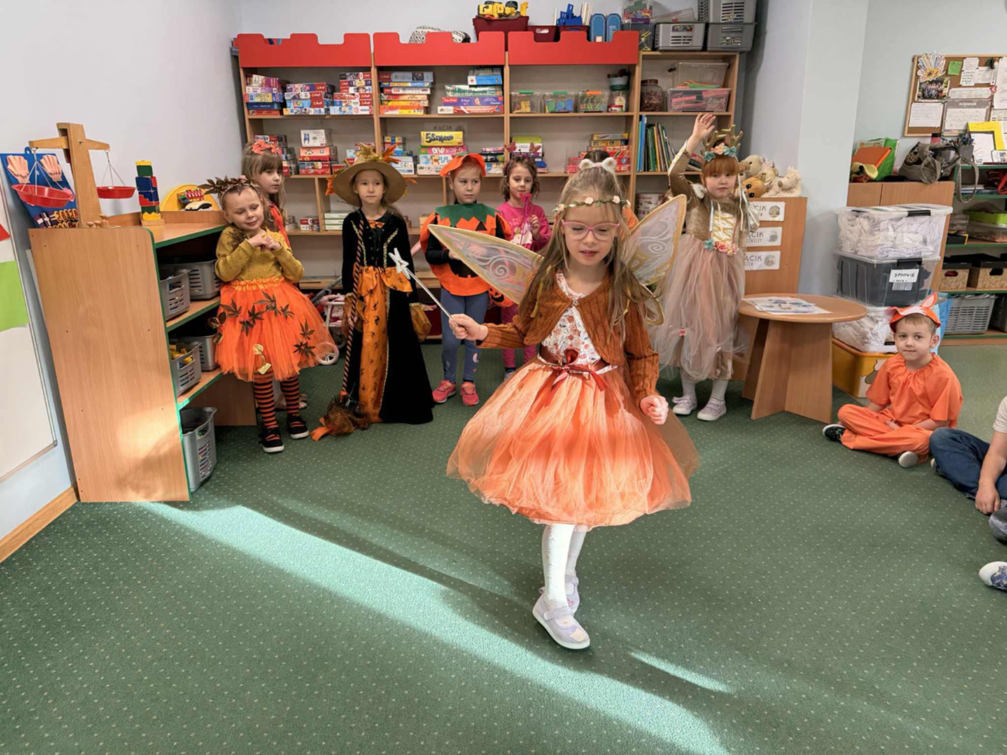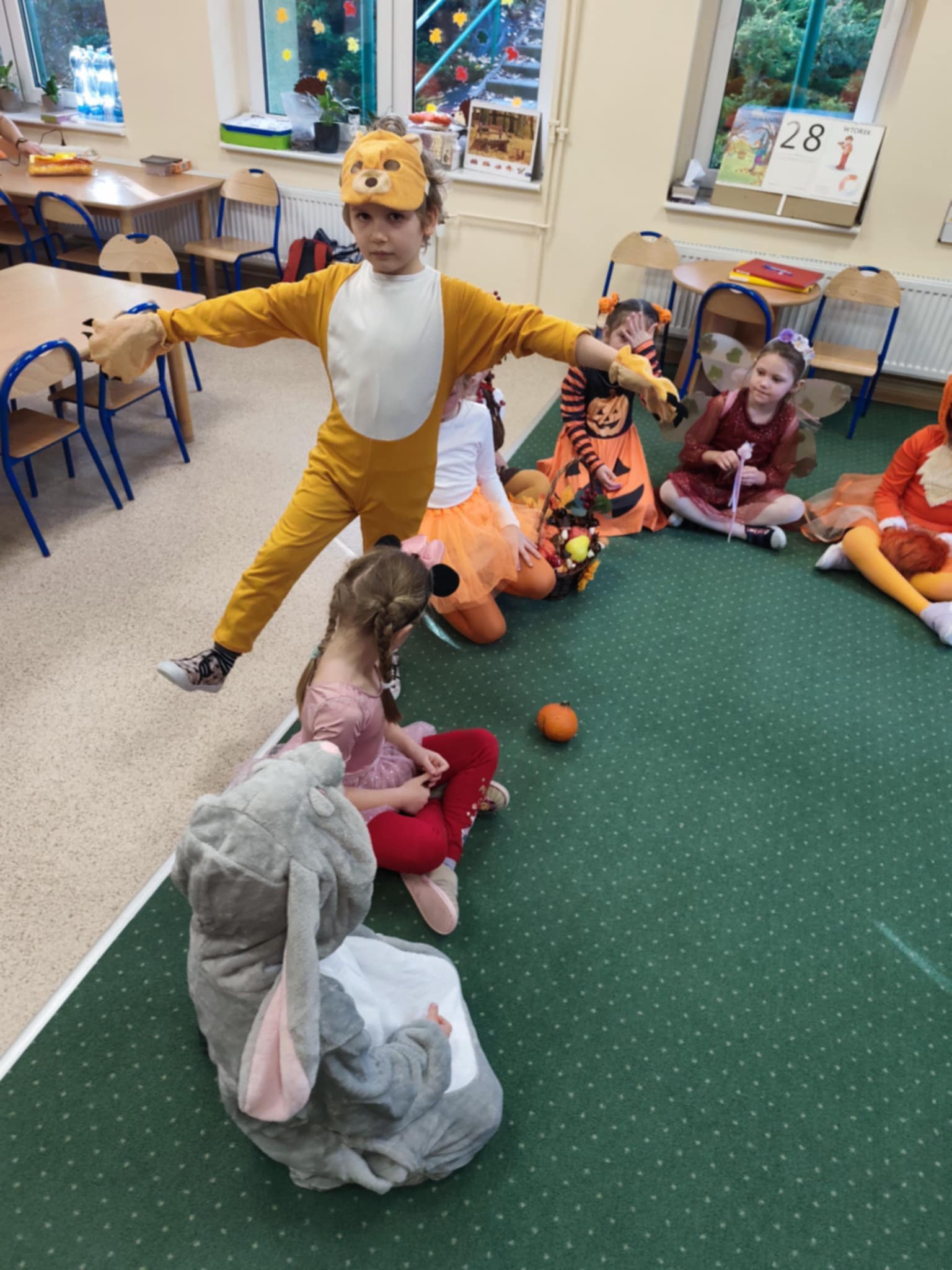 Jesienny Bal Przedszkolaka, który odbył się 29 października przyniósł dzieciom mnóstwo zabawy i niezapomnianych wrażeń. Sale zamieniły się w krainy pełne jesiennych barw, a każdy przedszkolak z dumą prezentował swój strój. Wśród uczestników można było spotkać wesołe krasnoludki, leśne zwierzątka, grzybki, wirujące listki. Były wspólne tańce, rozmaite konkursy i zabawy ruchowe. Radości, śmiechu i energii nie brakowało! Na zakończenie każdy przedszkolak otrzymał pamiątkowy dyplom oraz drobny upominek. Był to dzień pełen ciepła, muzyki i jesiennej magii.