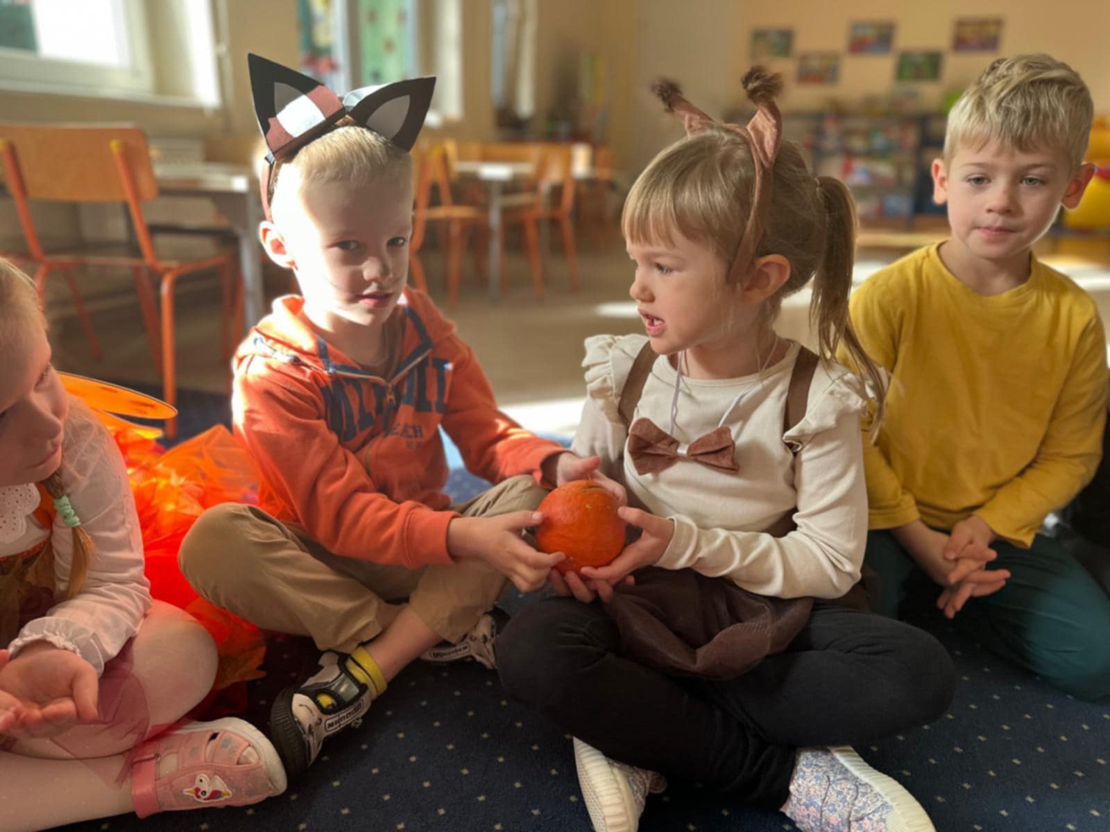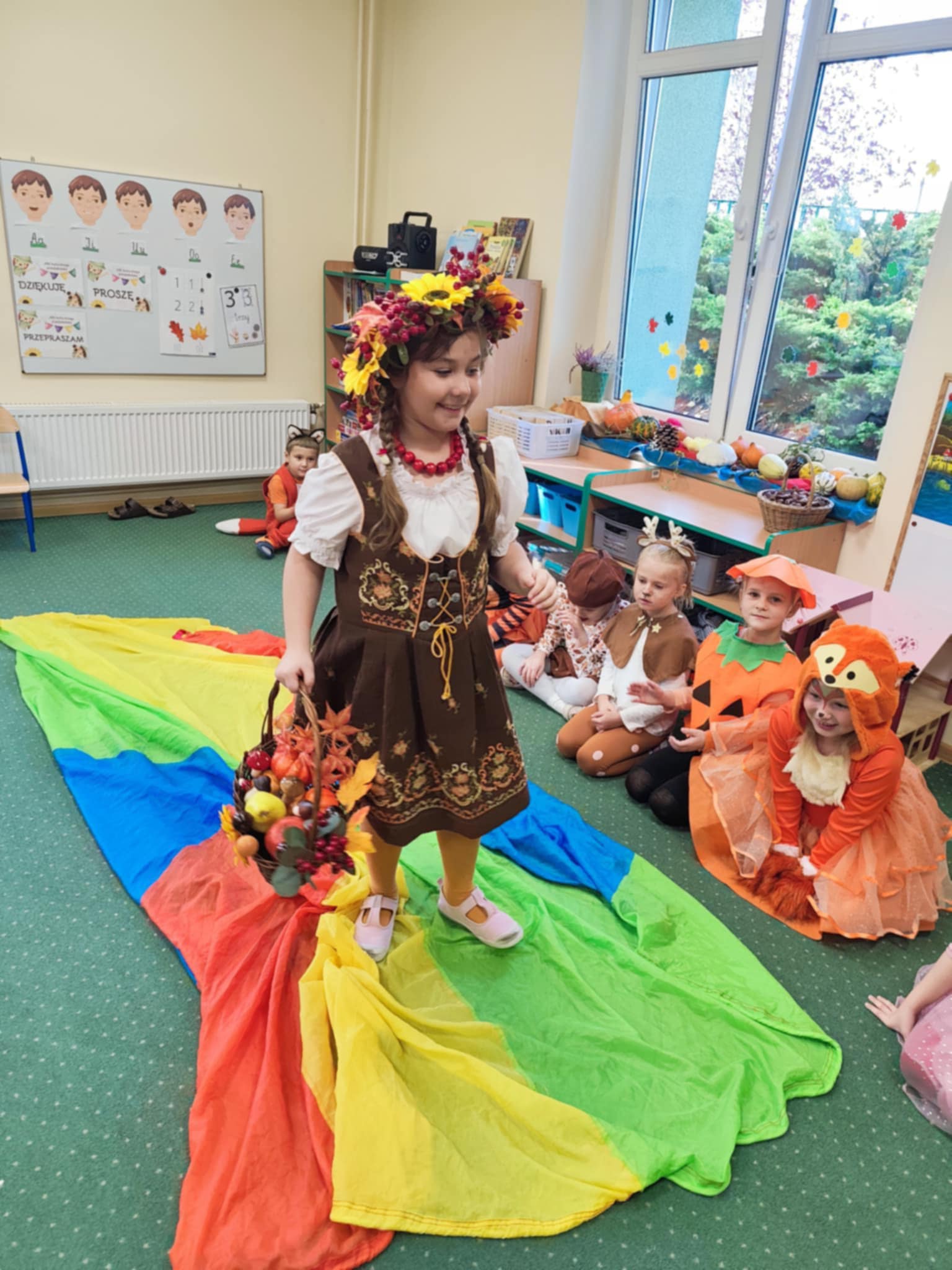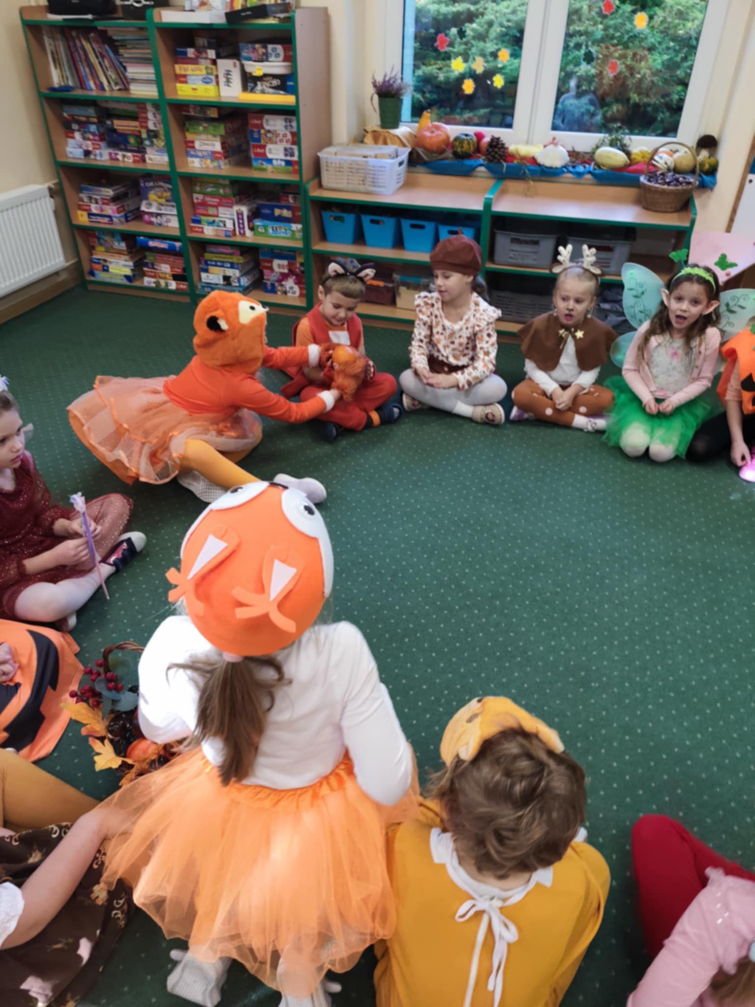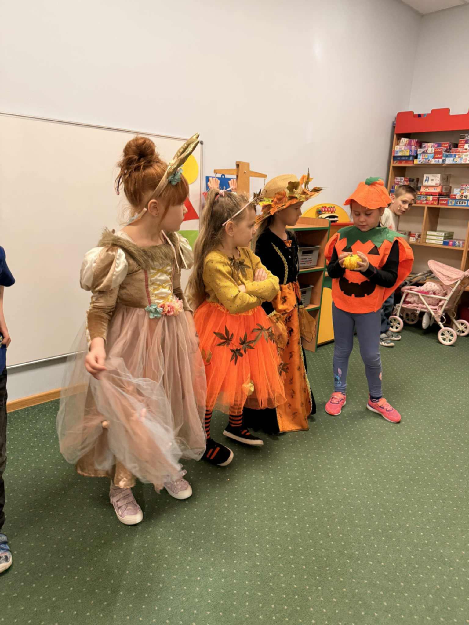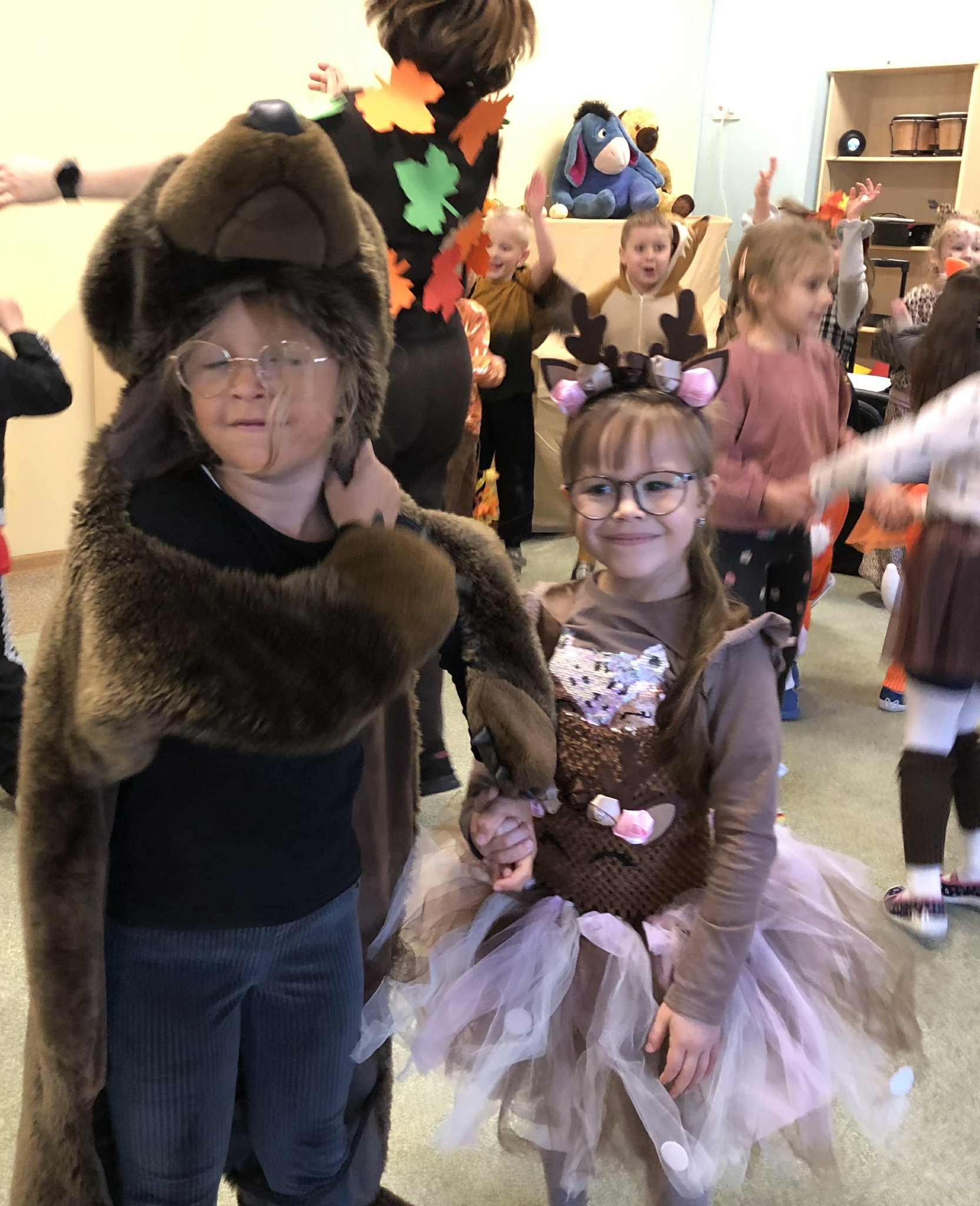 Jesienny Bal Przedszkolaka, który odbył się 29 października przyniósł dzieciom mnóstwo zabawy i niezapomnianych wrażeń. Sale zamieniły się w krainy pełne jesiennych barw, a każdy przedszkolak z dumą prezentował swój strój. Wśród uczestników można było spotkać wesołe krasnoludki, leśne zwierzątka, grzybki, wirujące listki. Były wspólne tańce, rozmaite konkursy i zabawy ruchowe. Radości, śmiechu i energii nie brakowało! Na zakończenie każdy przedszkolak otrzymał pamiątkowy dyplom oraz drobny upominek. Był to dzień pełen ciepła, muzyki i jesiennej magii.
