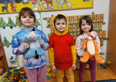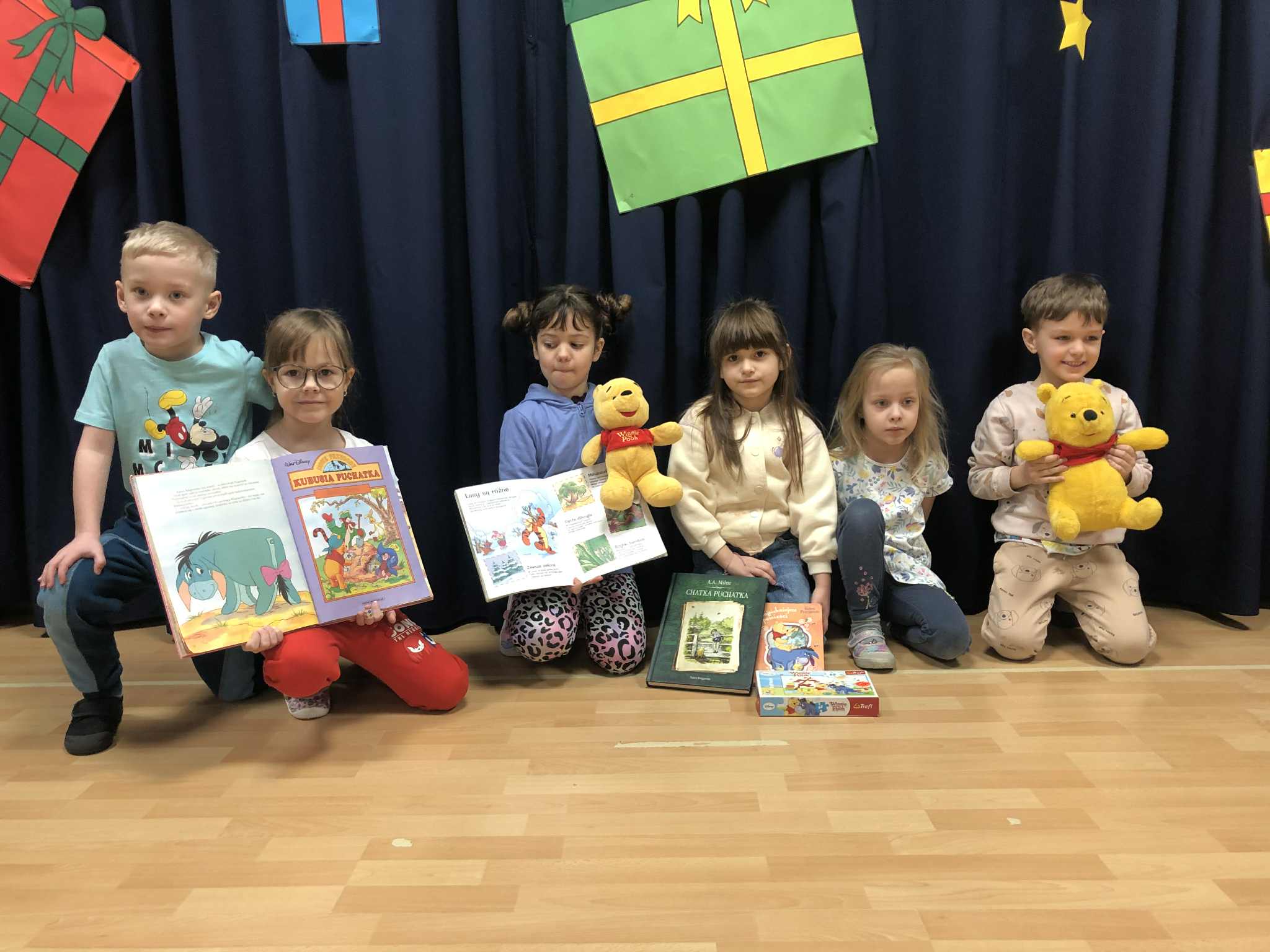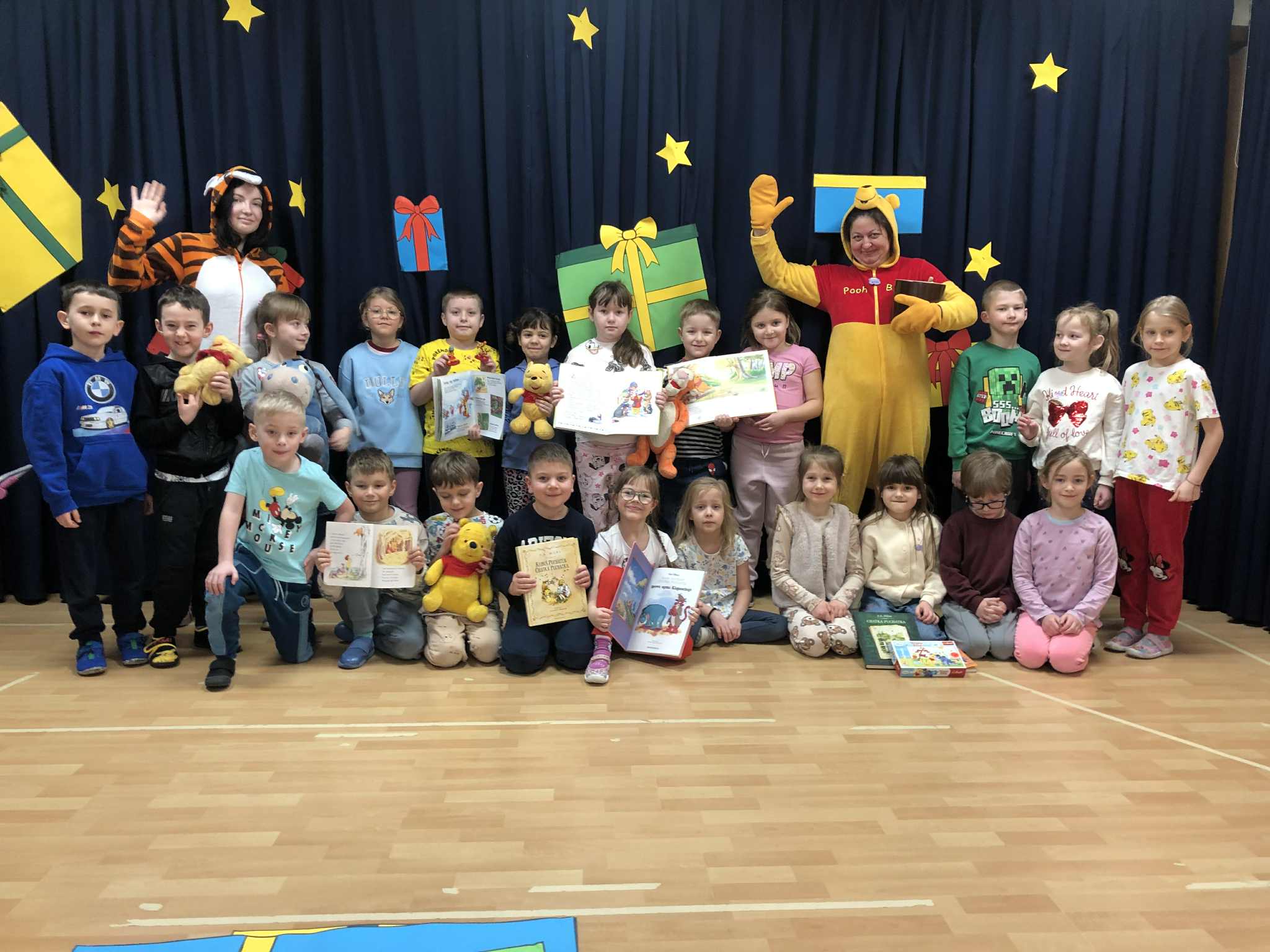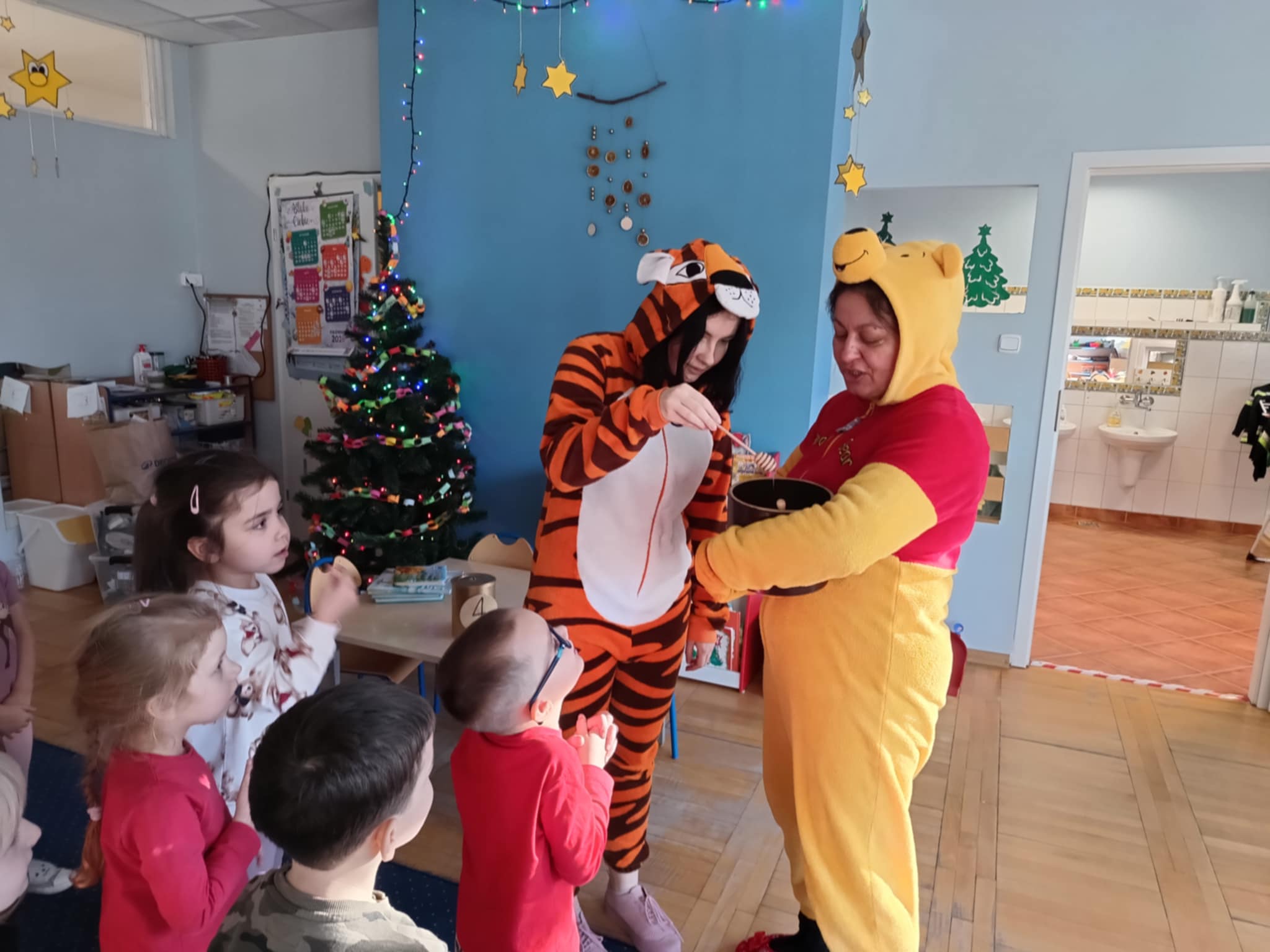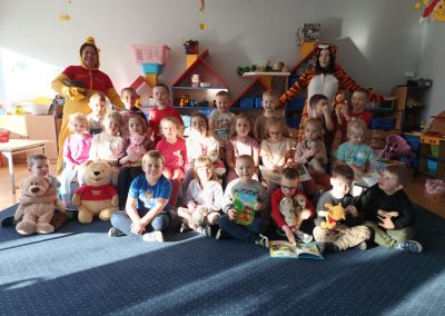 Dzień Kubusia Puchatka w Przedszkolu „Wesołe Skrzaty” w Pobiedziskach utworzone przez d.jekel@przedszkolepobiedziska.pl | sty 21, 2026 | Aktualności Dziś odwiedził nas Kubuś Puchatek ze swoim przyjacielem Tygryskiem. Wspólnie bawiliśmy się w „puchatkowe zabawy”, tańczyliśmy „misiowe tańce”, śpiewaliśmy piosenki, próbowaliśmy, jak smakuje miód. Była też Kubusiowa foto-budka.