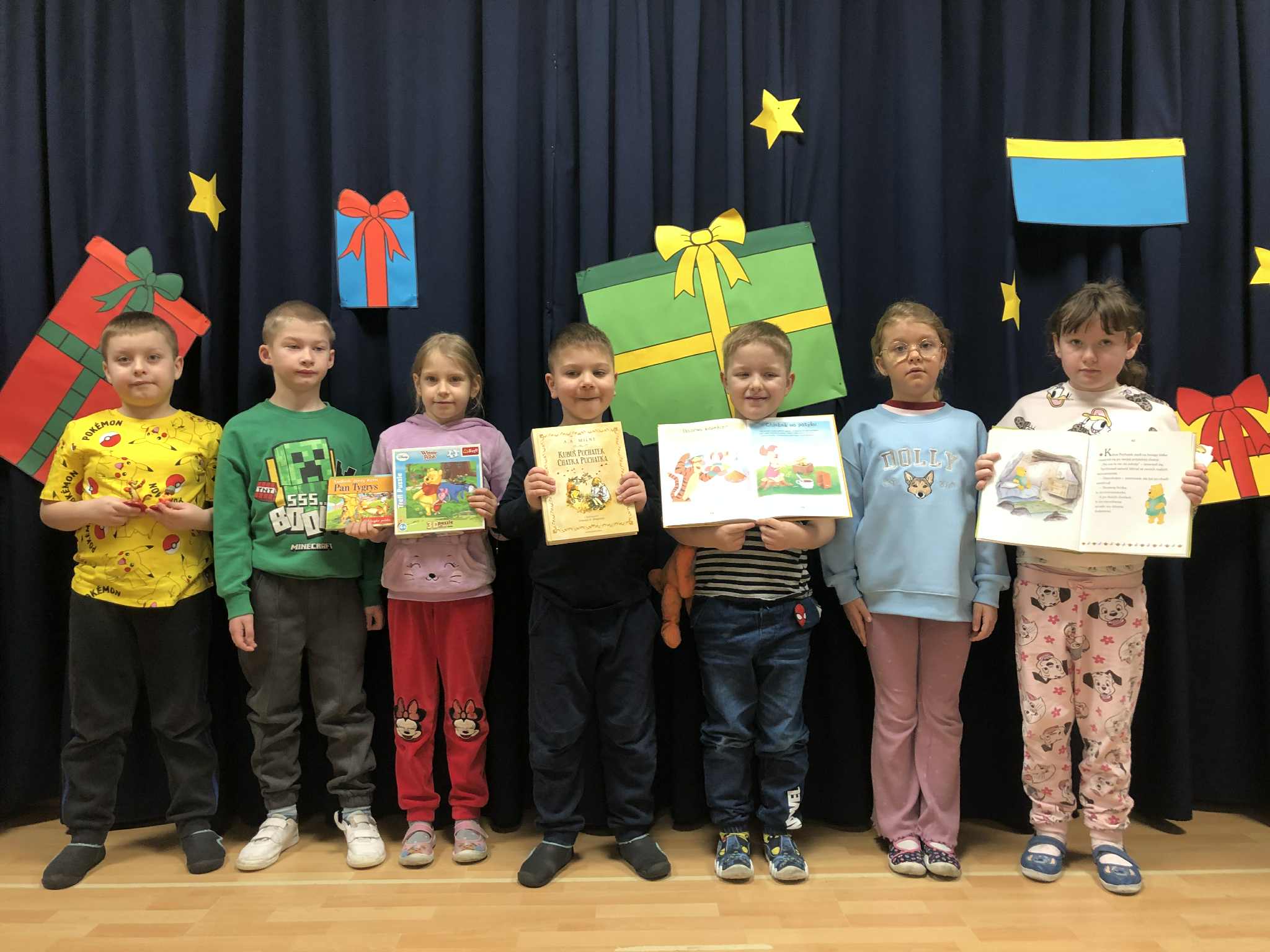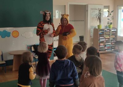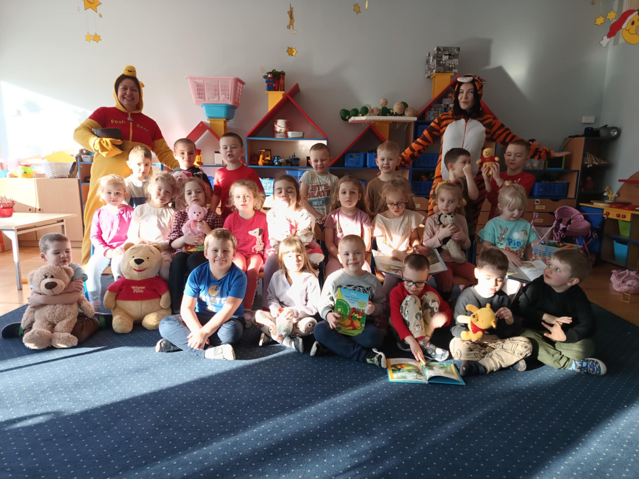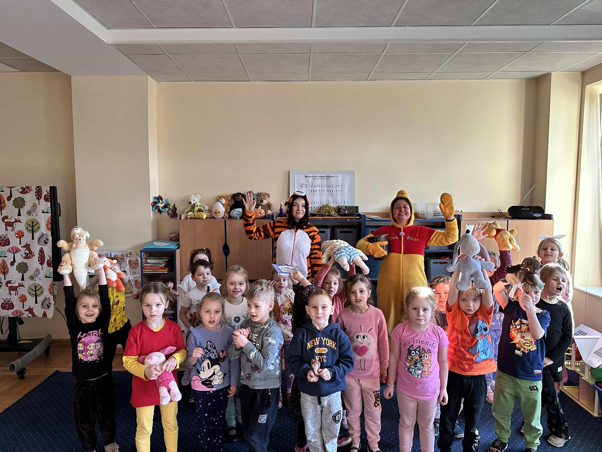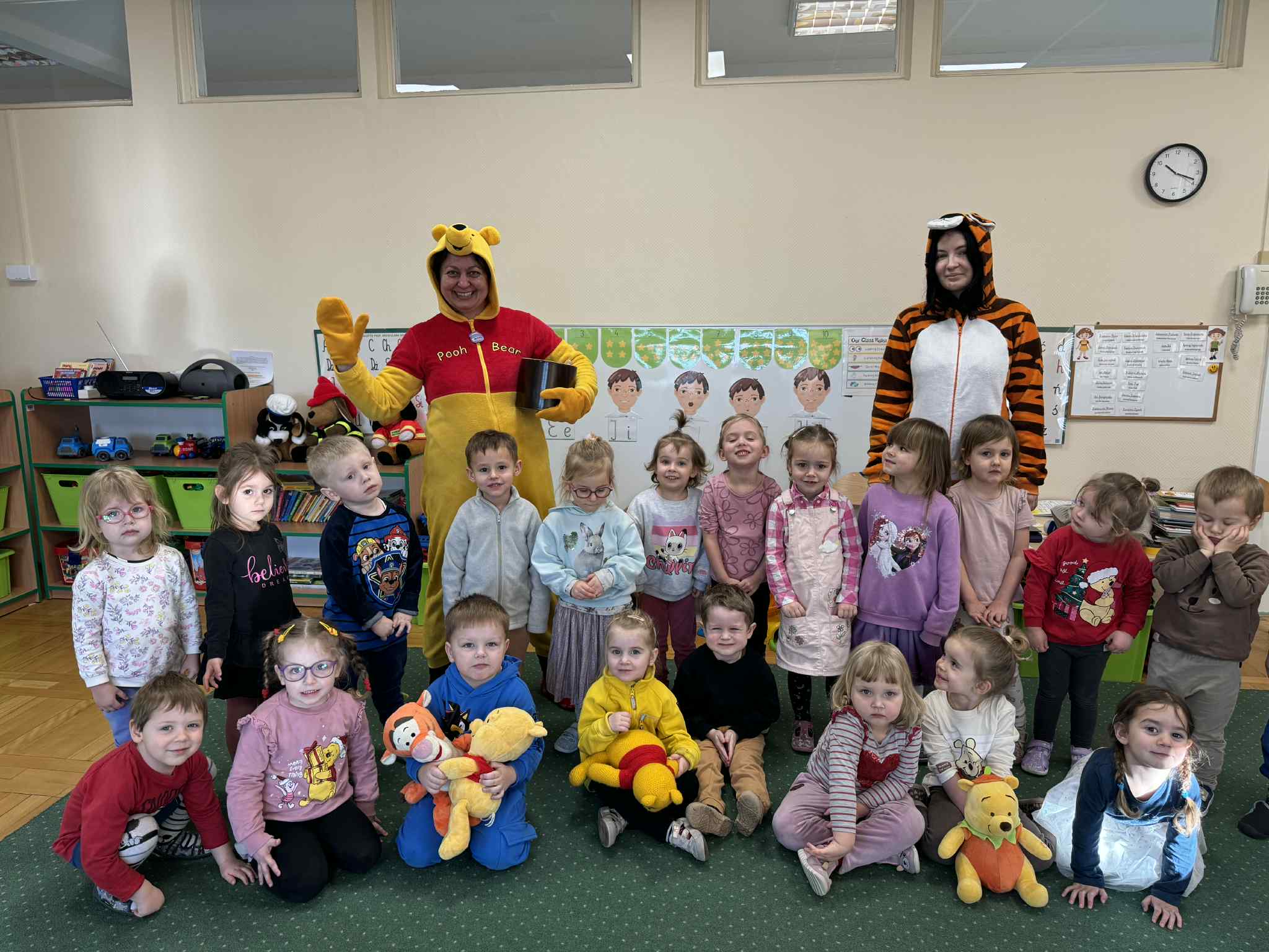 Dzień Kubusia Puchatka w Przedszkolu „Wesołe Skrzaty” w Pobiedziskach utworzone przez d.jekel@przedszkolepobiedziska.pl | sty 21, 2026 | Aktualności Dziś odwiedził nas Kubuś Puchatek ze swoim przyjacielem Tygryskiem. Wspólnie bawiliśmy się w „puchatkowe zabawy”, tańczyliśmy „misiowe tańce”, śpiewaliśmy piosenki, próbowaliśmy, jak smakuje miód. Była też Kubusiowa foto-budka.