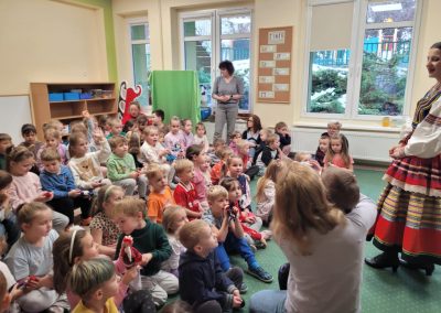 Poznajemy kulturę wschodnią- zajęcia z Panią Patrycją Szablewską utworzone przez d.jekel@przedszkolepobiedziska.pl | gru 3, 2025 | Aktualności Dziś tańce! Poznajemy kulturę wschodnią. Dziękujemy Pani Patrycji Szablewskiej za przybliżenie nam kultury, muzyki i tańców naszych wschodnich sąsiadów! To były bardzo ciekawe i inspirujące zajęcia!