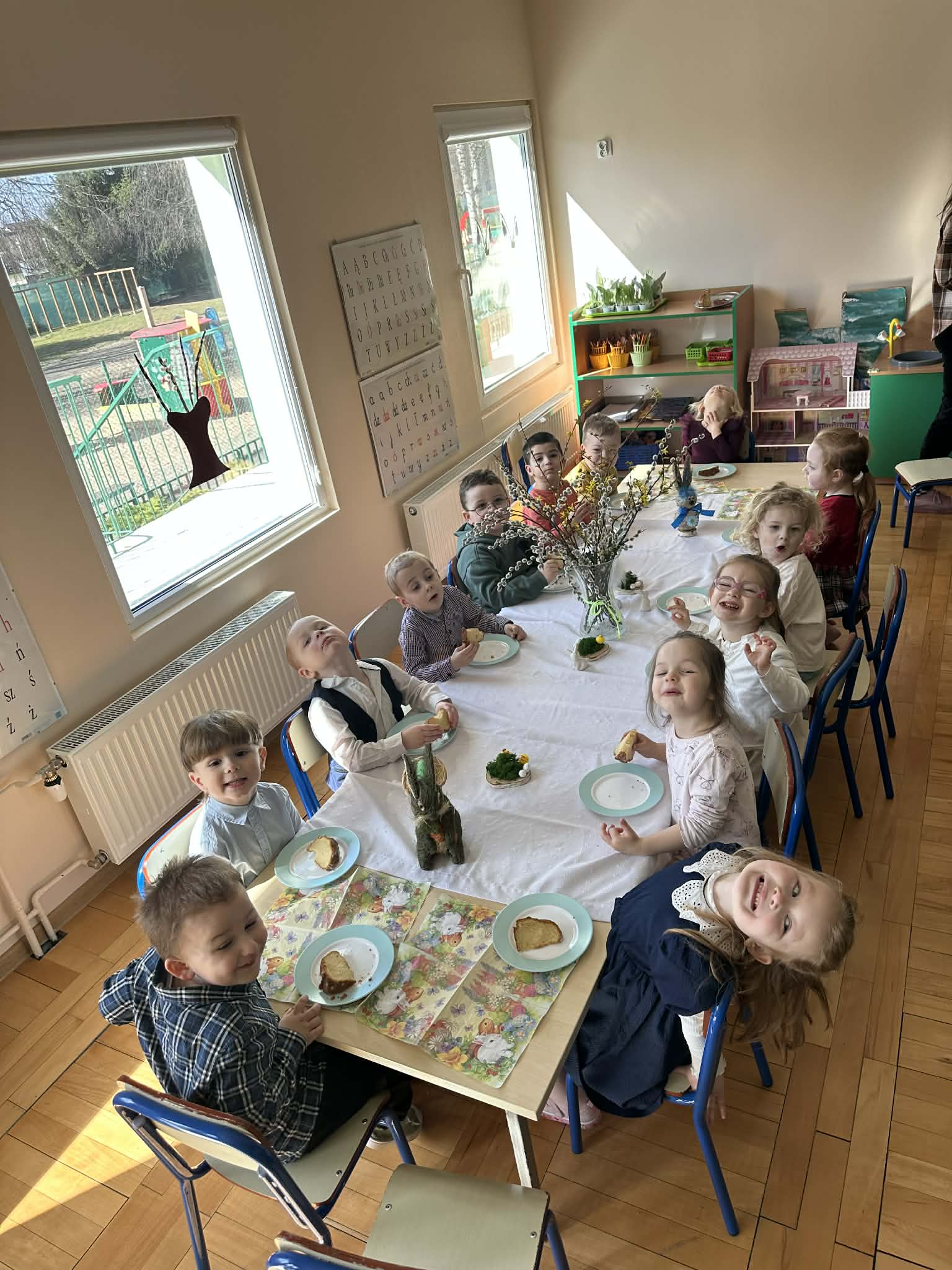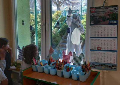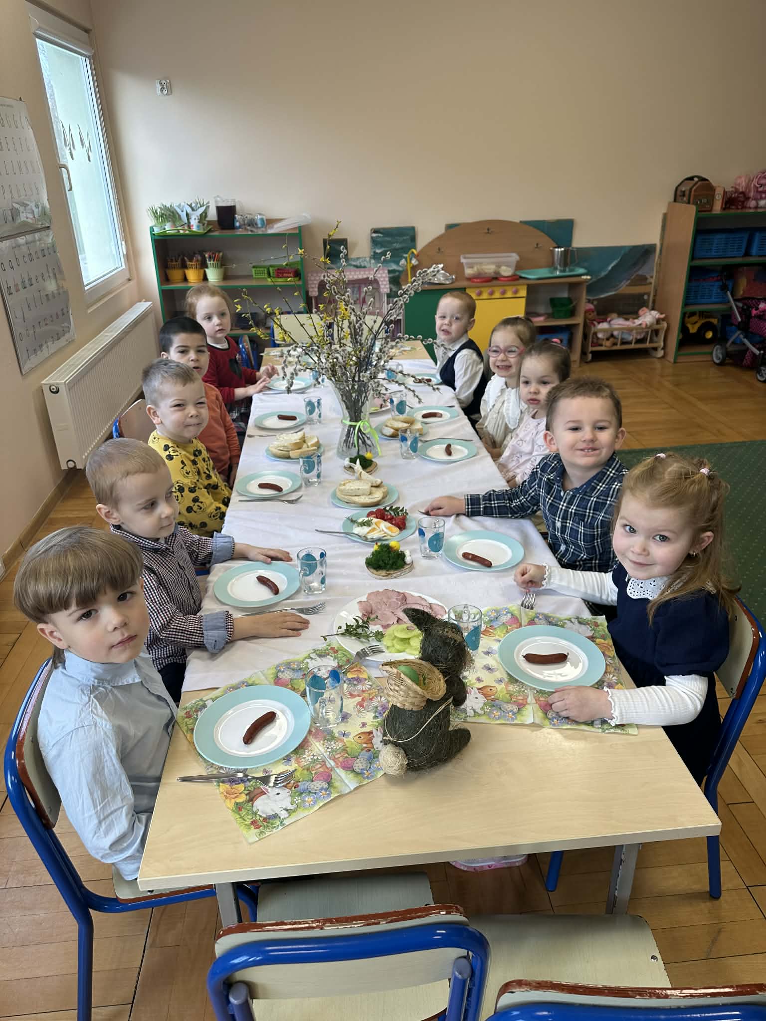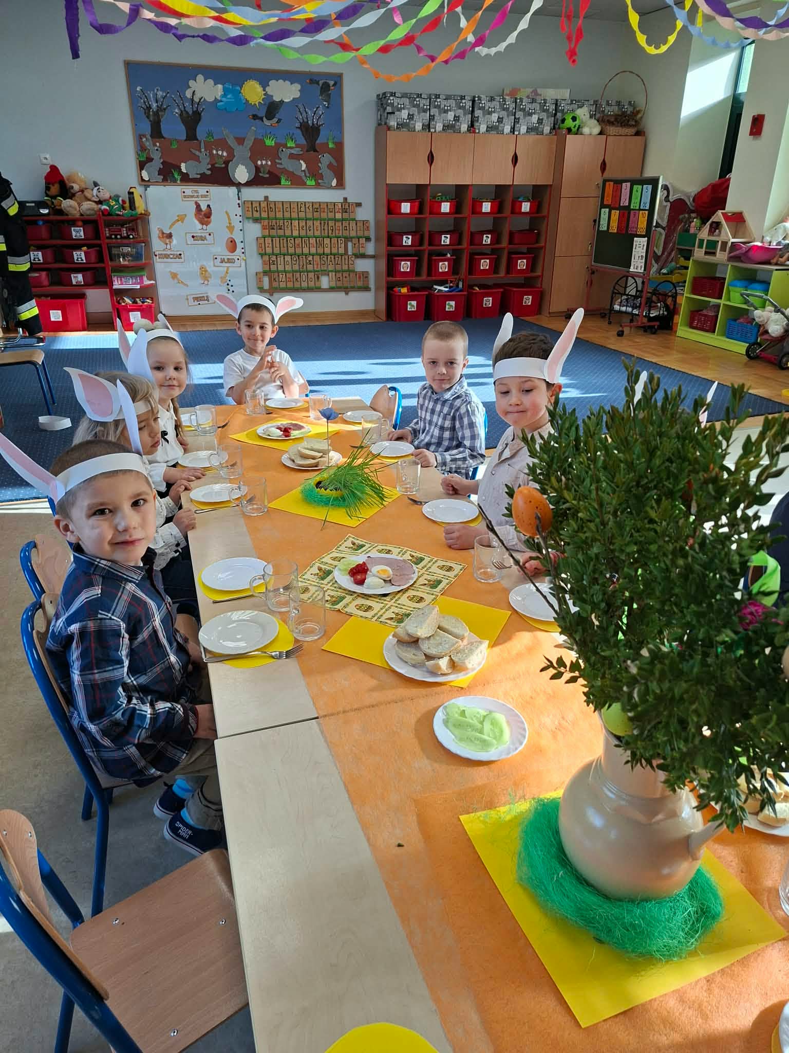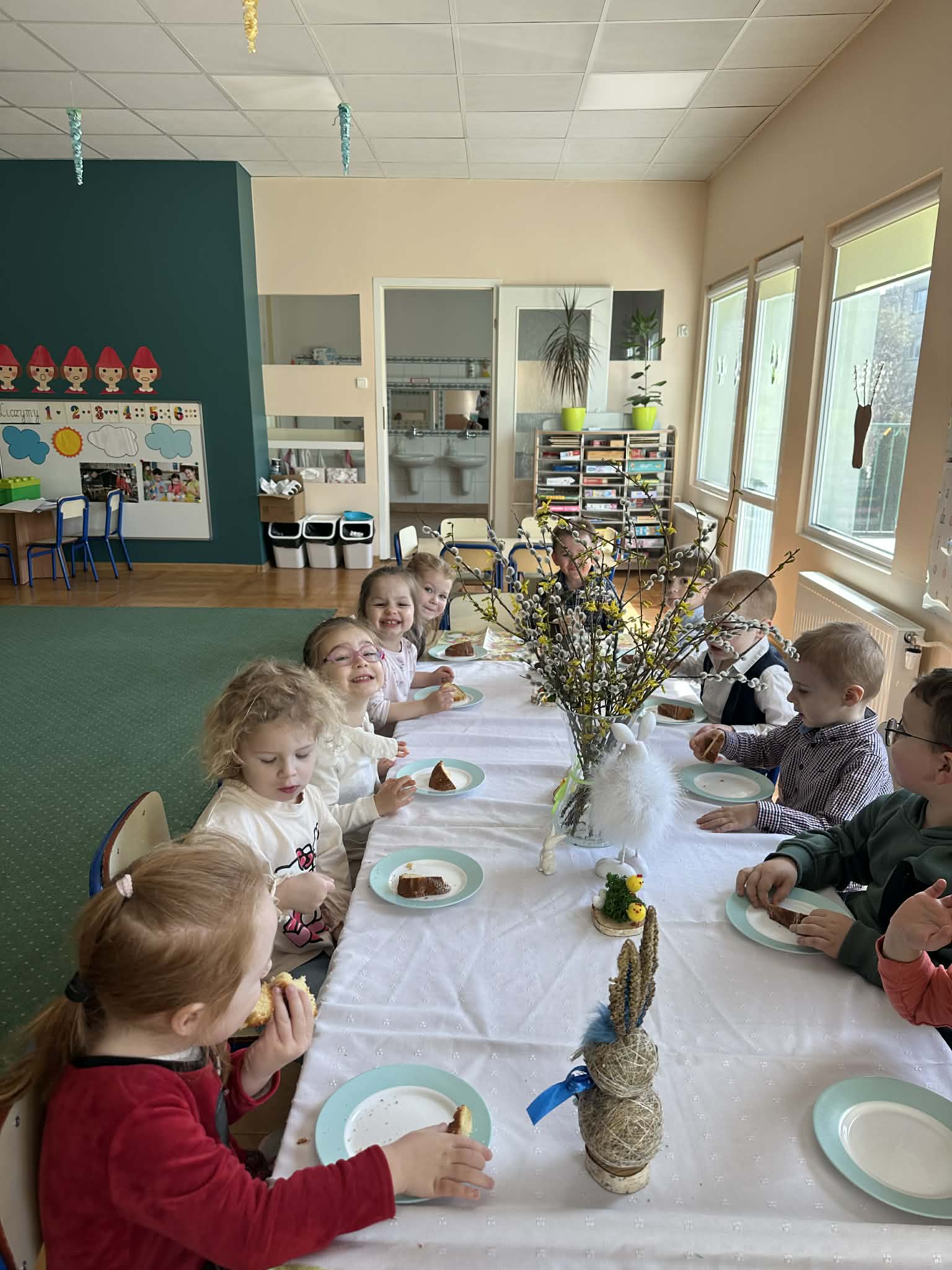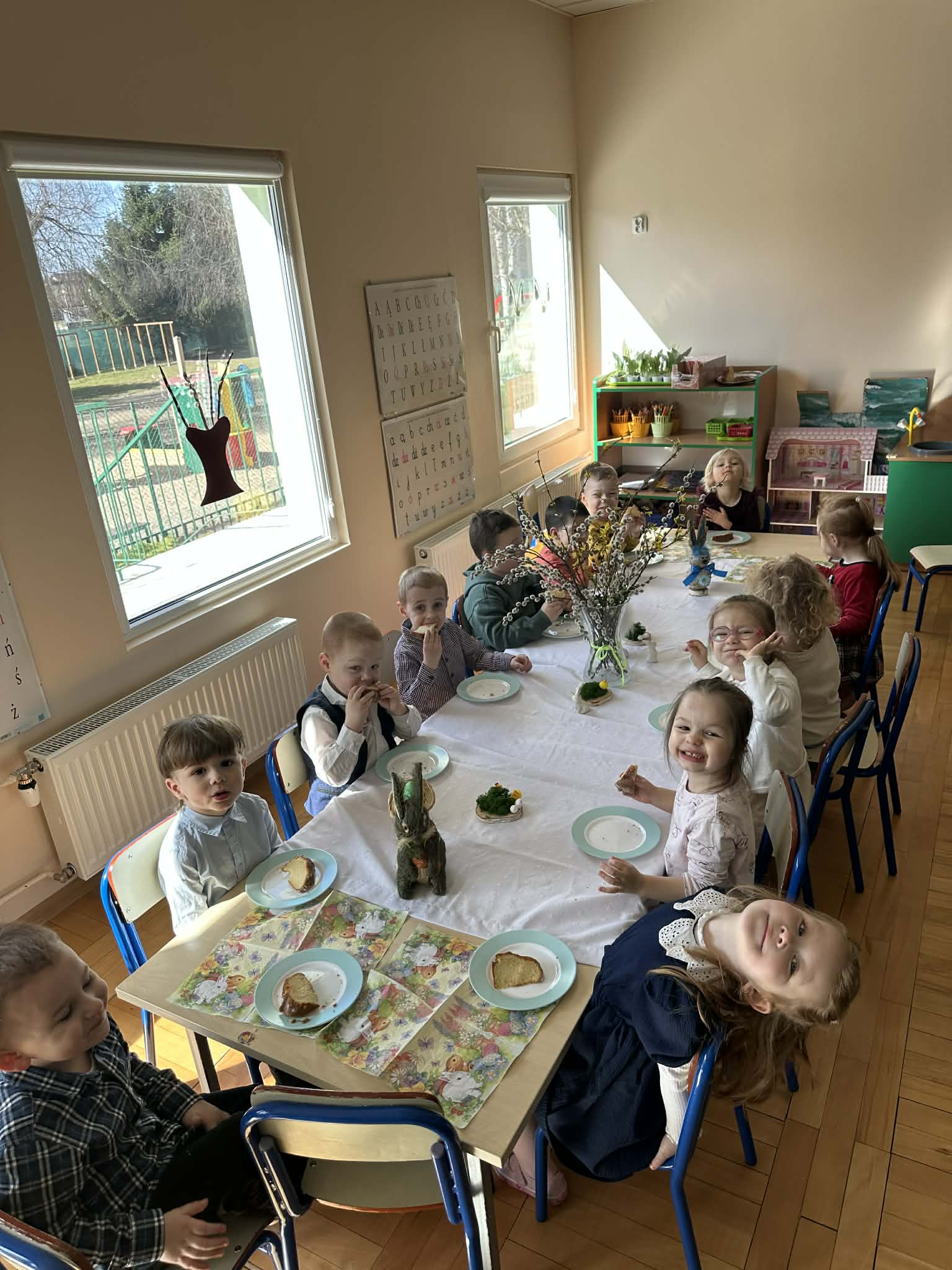 Śniadanie Wielkanocne utworzone przez d.jekel@przedszkolepobiedziska.pl | kwi 8, 2026 | Aktualności W środę, już tradycyjnie, zasiedliśmy do Śniadania Wielkanocnego. Po śniadaniu przykicali do nas goście i zostawili małe podarunki:)
