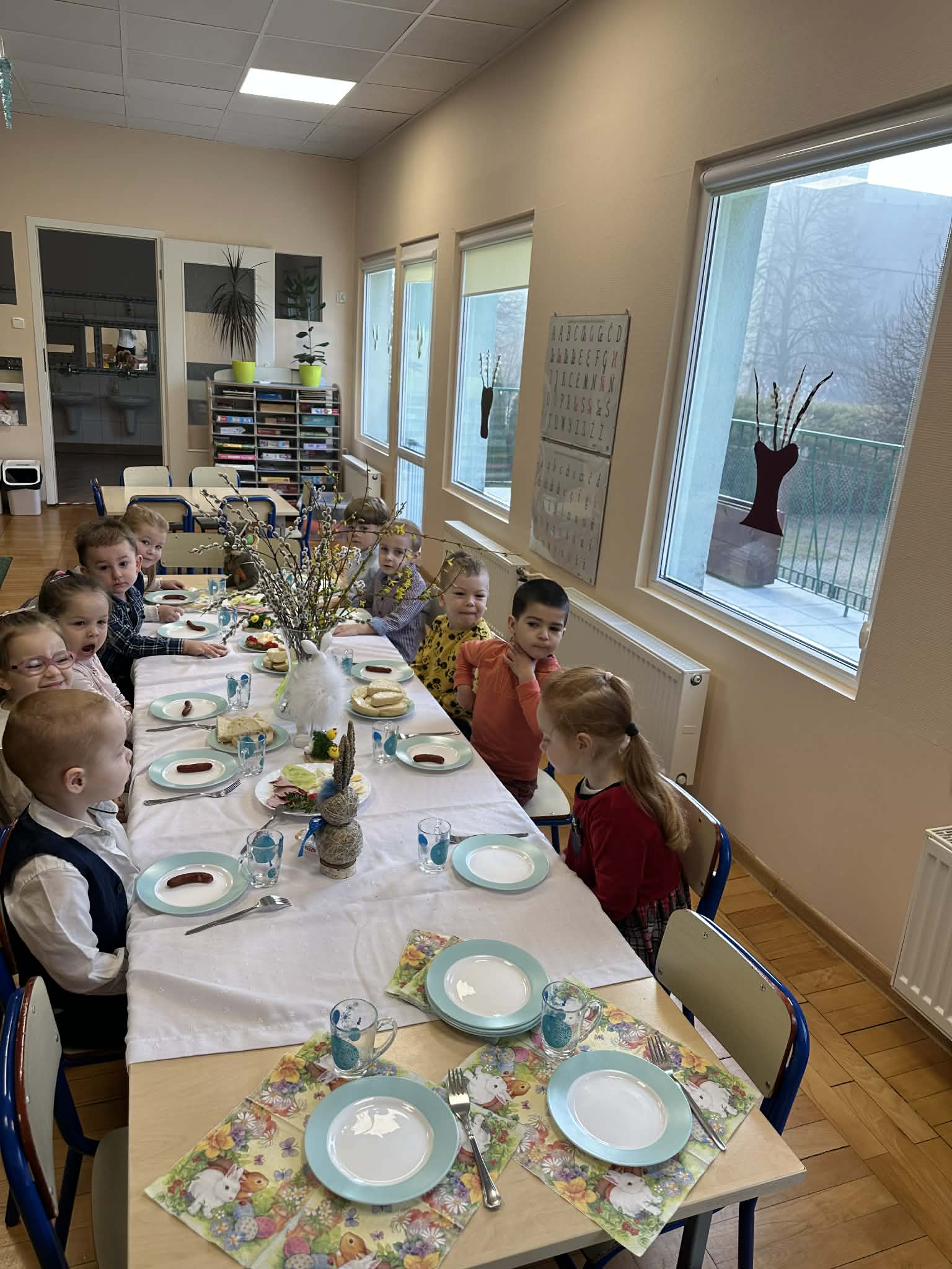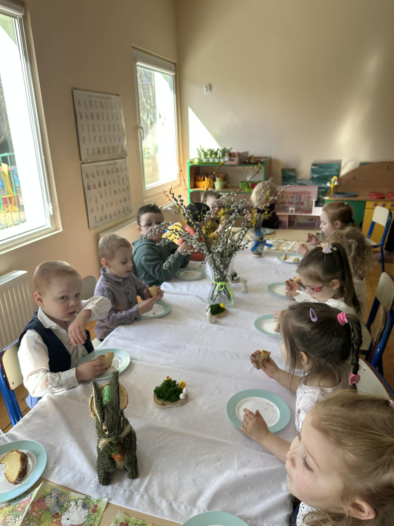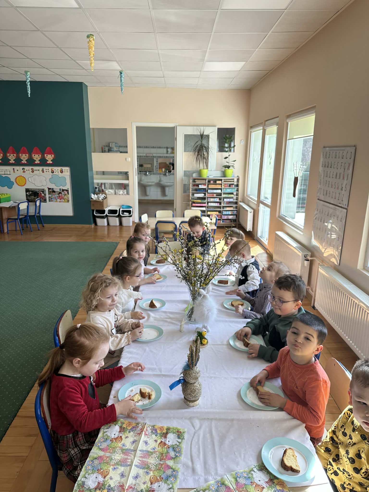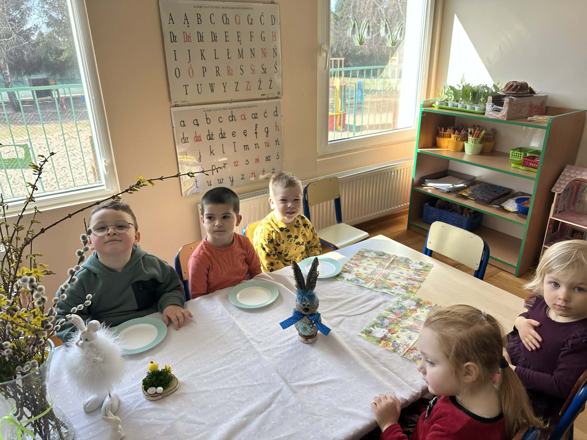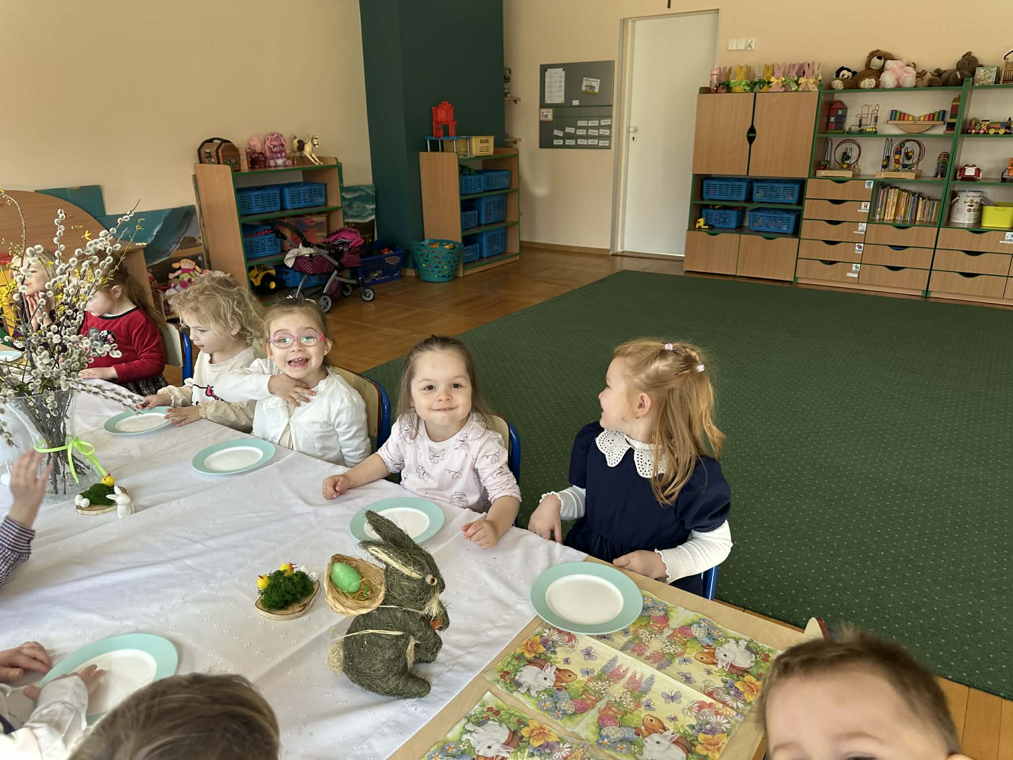 Śniadanie Wielkanocne utworzone przez d.jekel@przedszkolepobiedziska.pl | kwi 8, 2026 | Aktualności W środę, już tradycyjnie, zasiedliśmy do Śniadania Wielkanocnego. Po śniadaniu przykicali do nas goście i zostawili małe podarunki:)