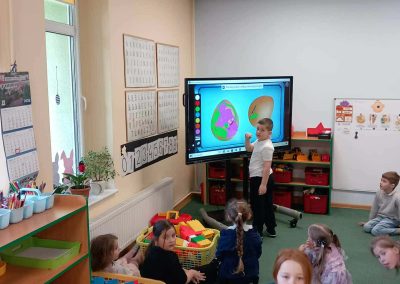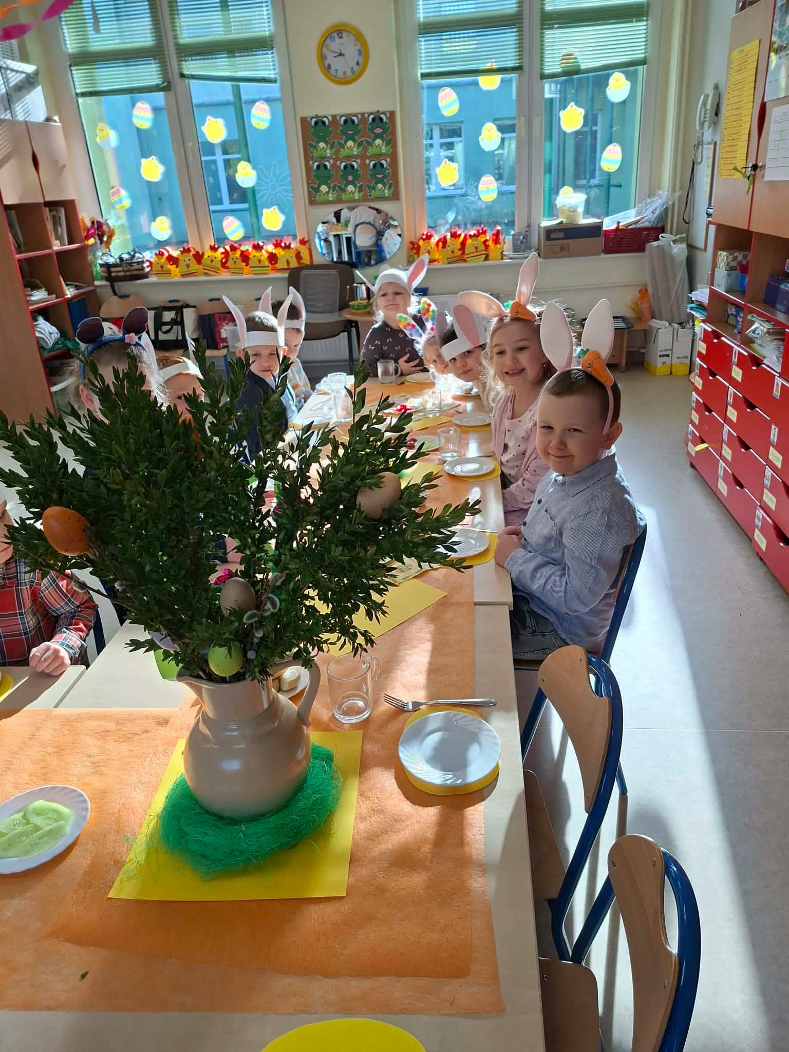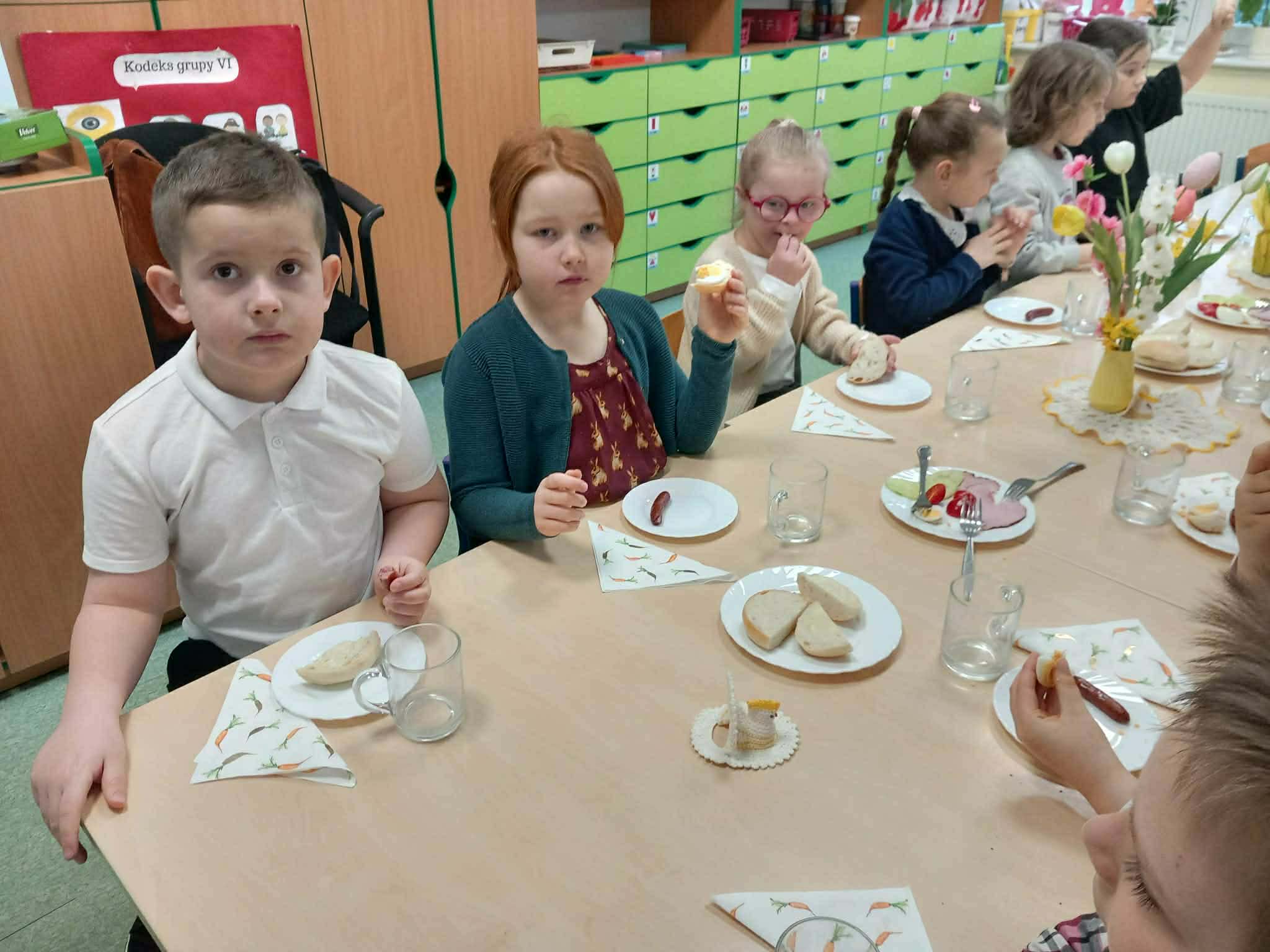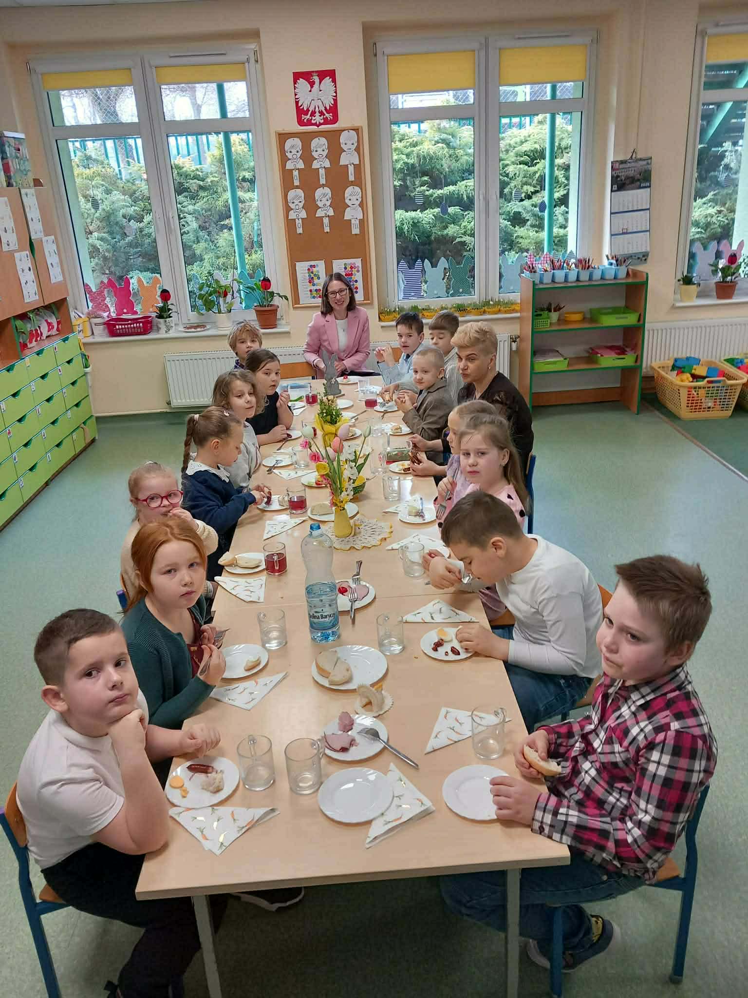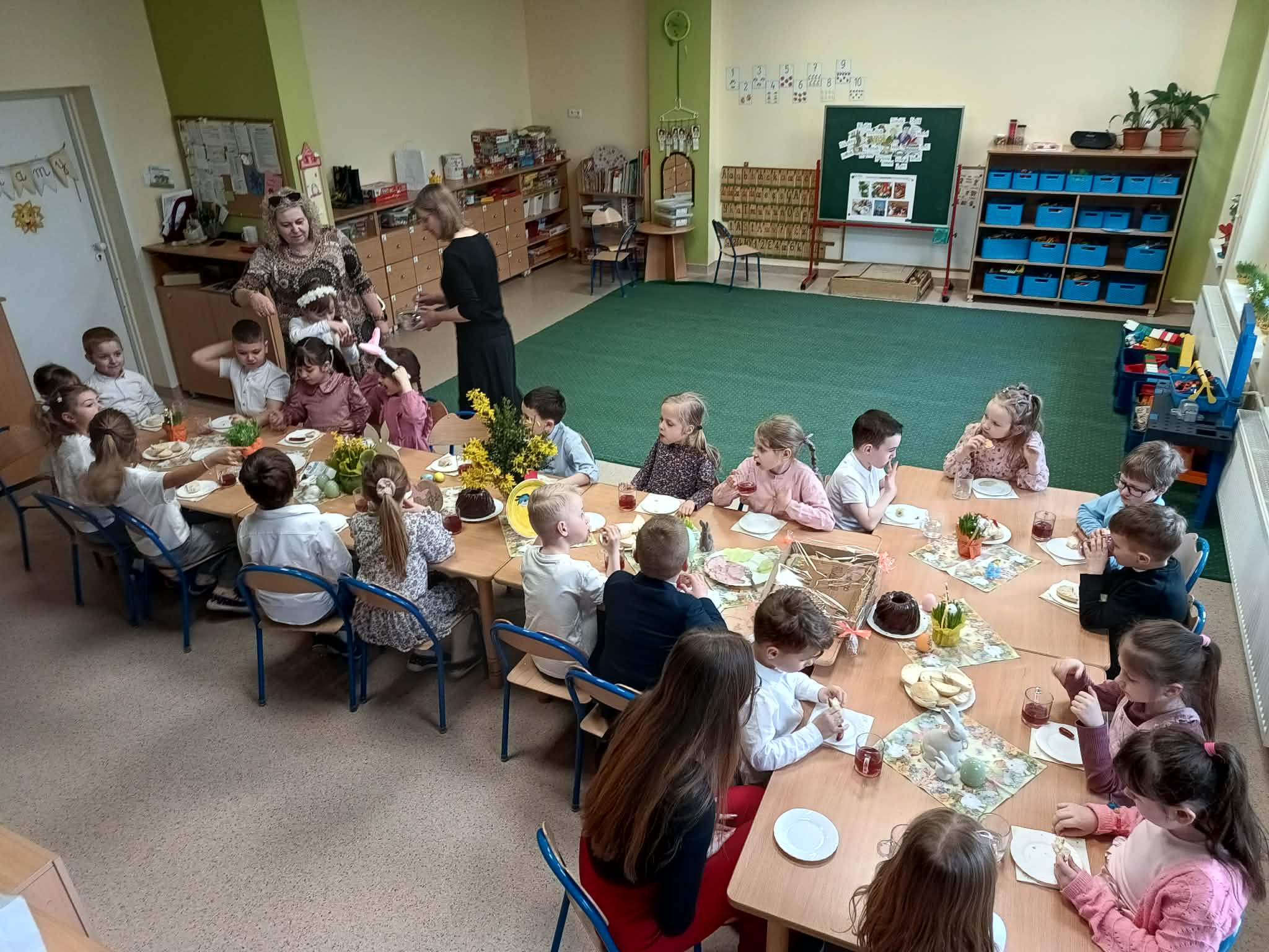 Śniadanie Wielkanocne utworzone przez d.jekel@przedszkolepobiedziska.pl | kwi 8, 2026 | Aktualności W środę, już tradycyjnie, zasiedliśmy do Śniadania Wielkanocnego. Po śniadaniu przykicali do nas goście i zostawili małe podarunki:)