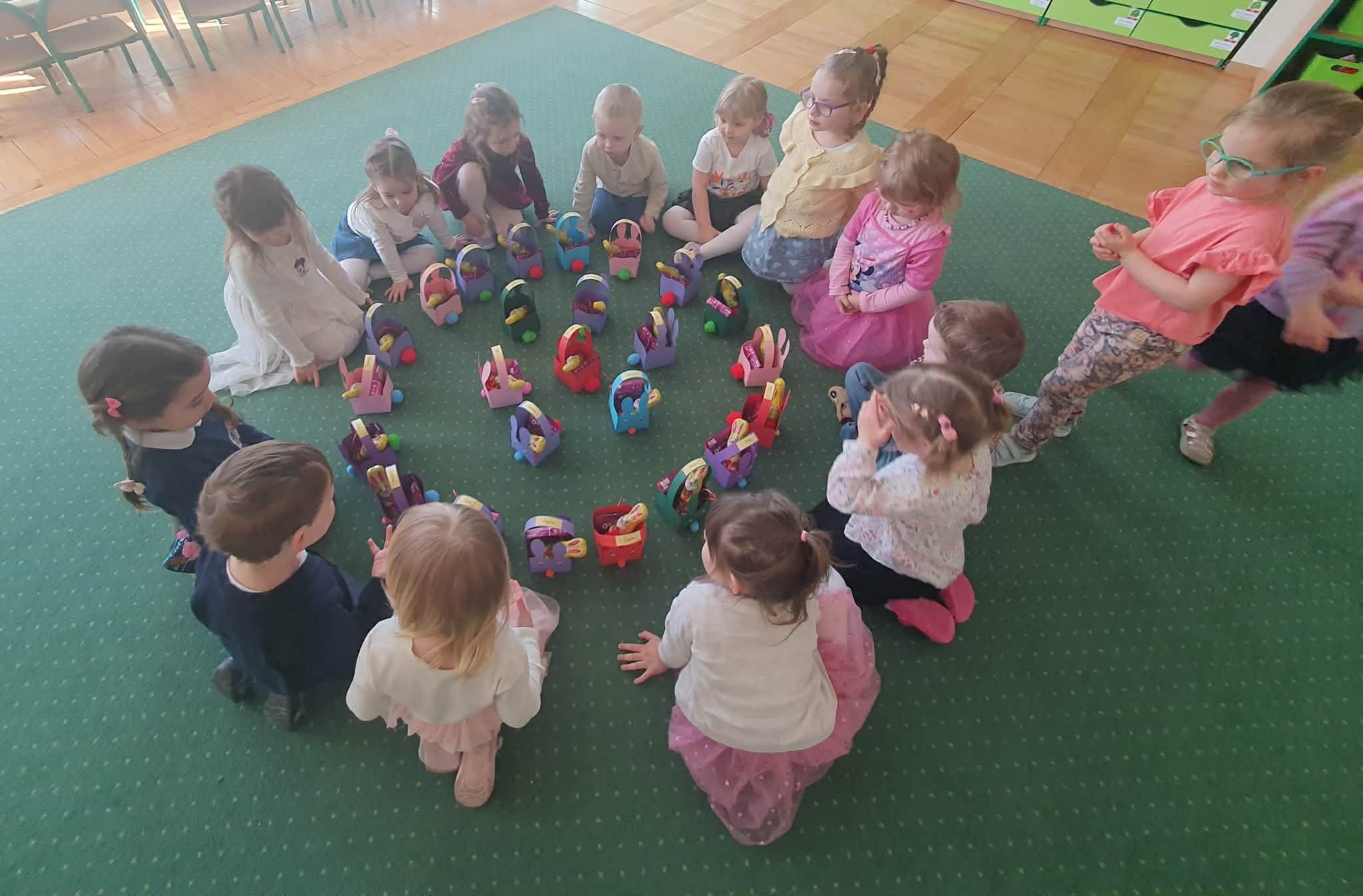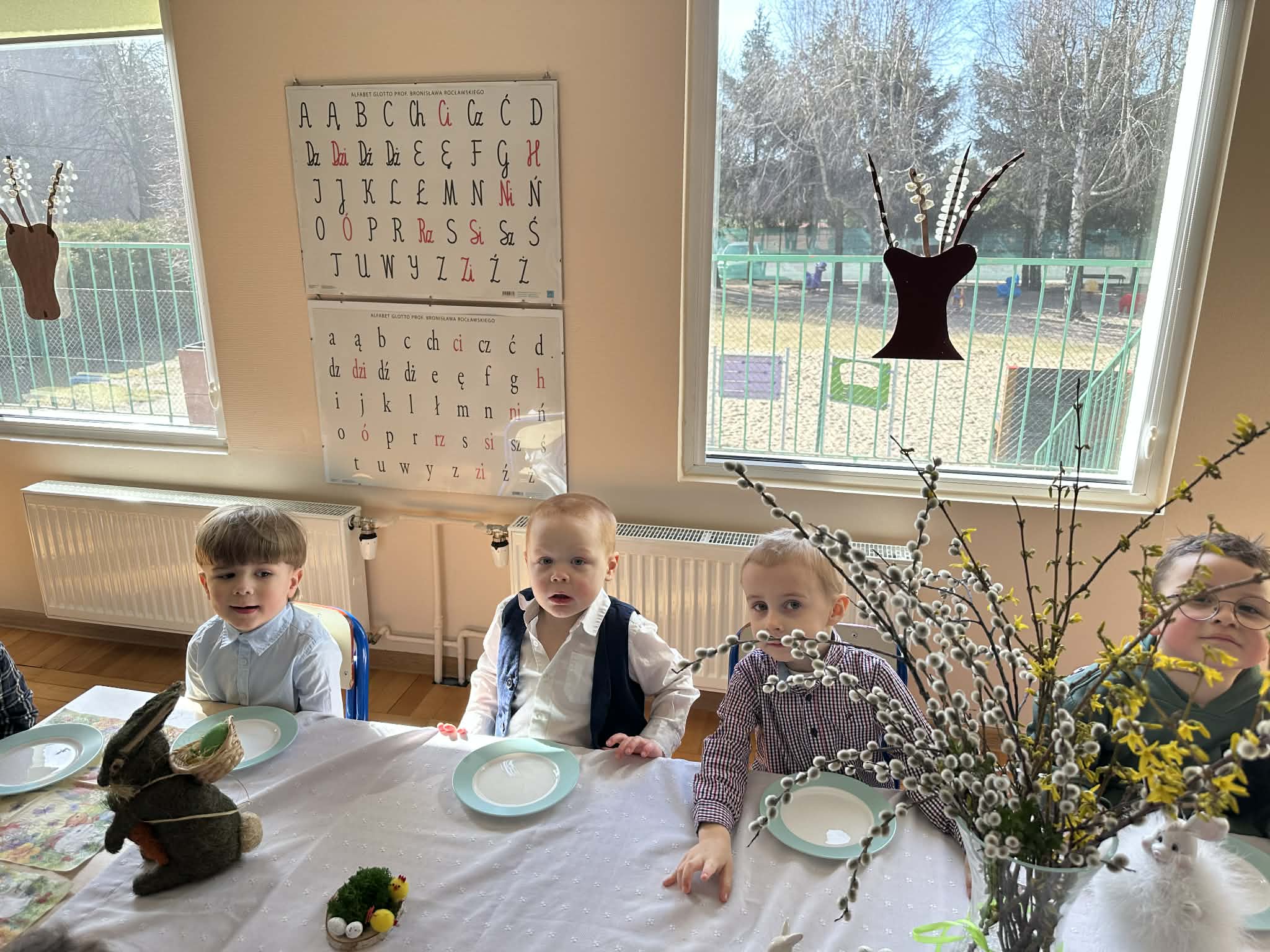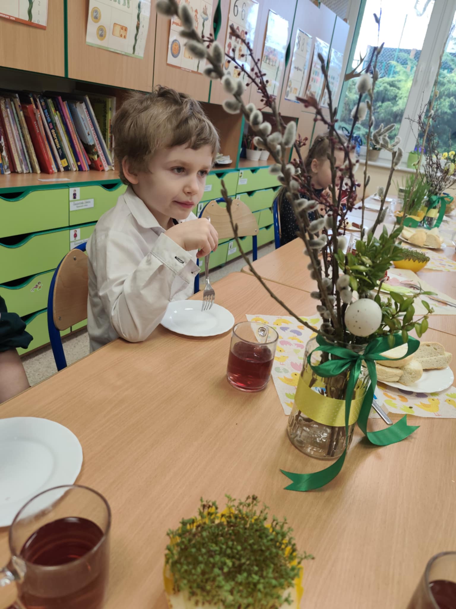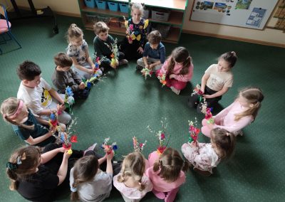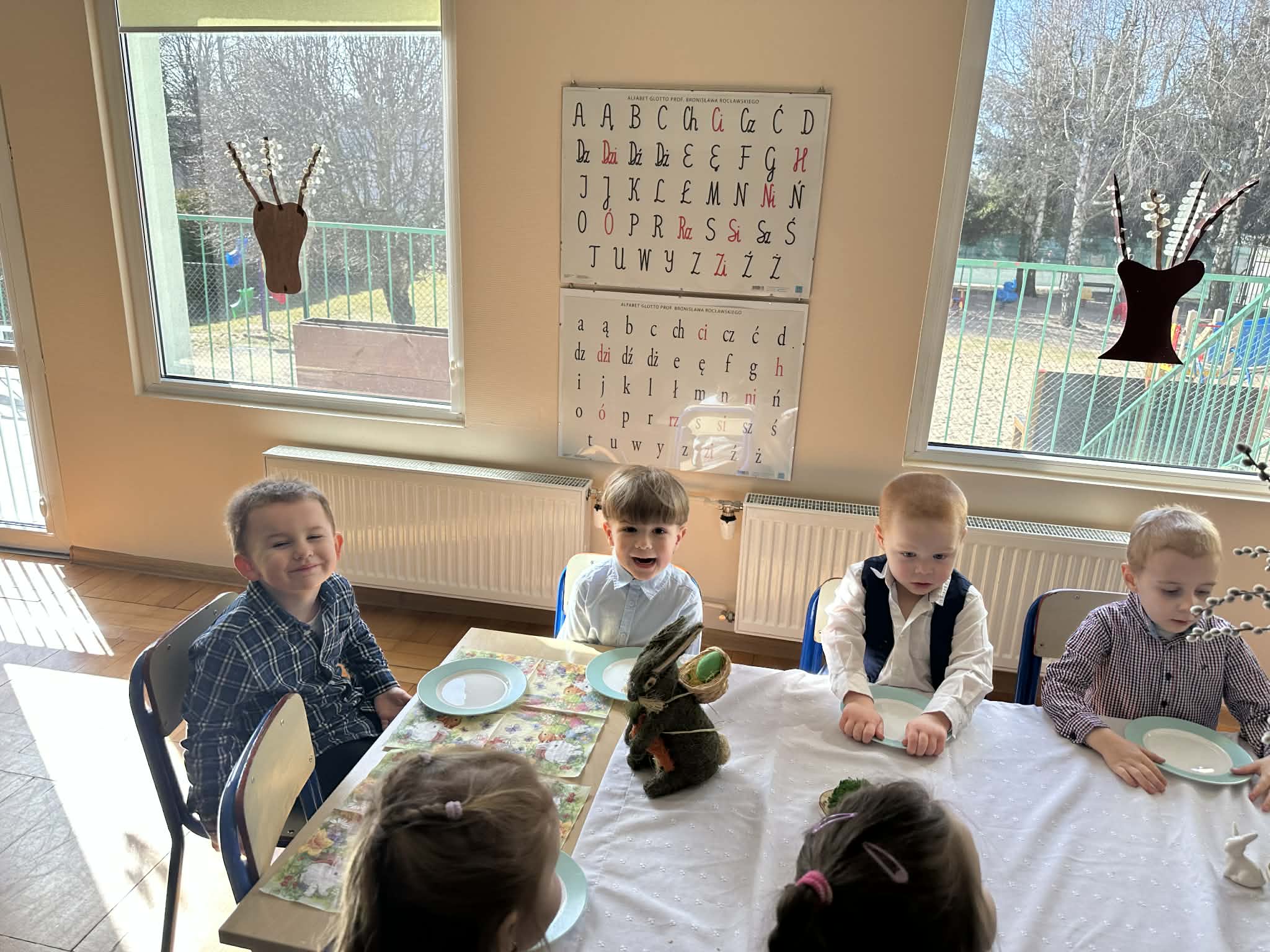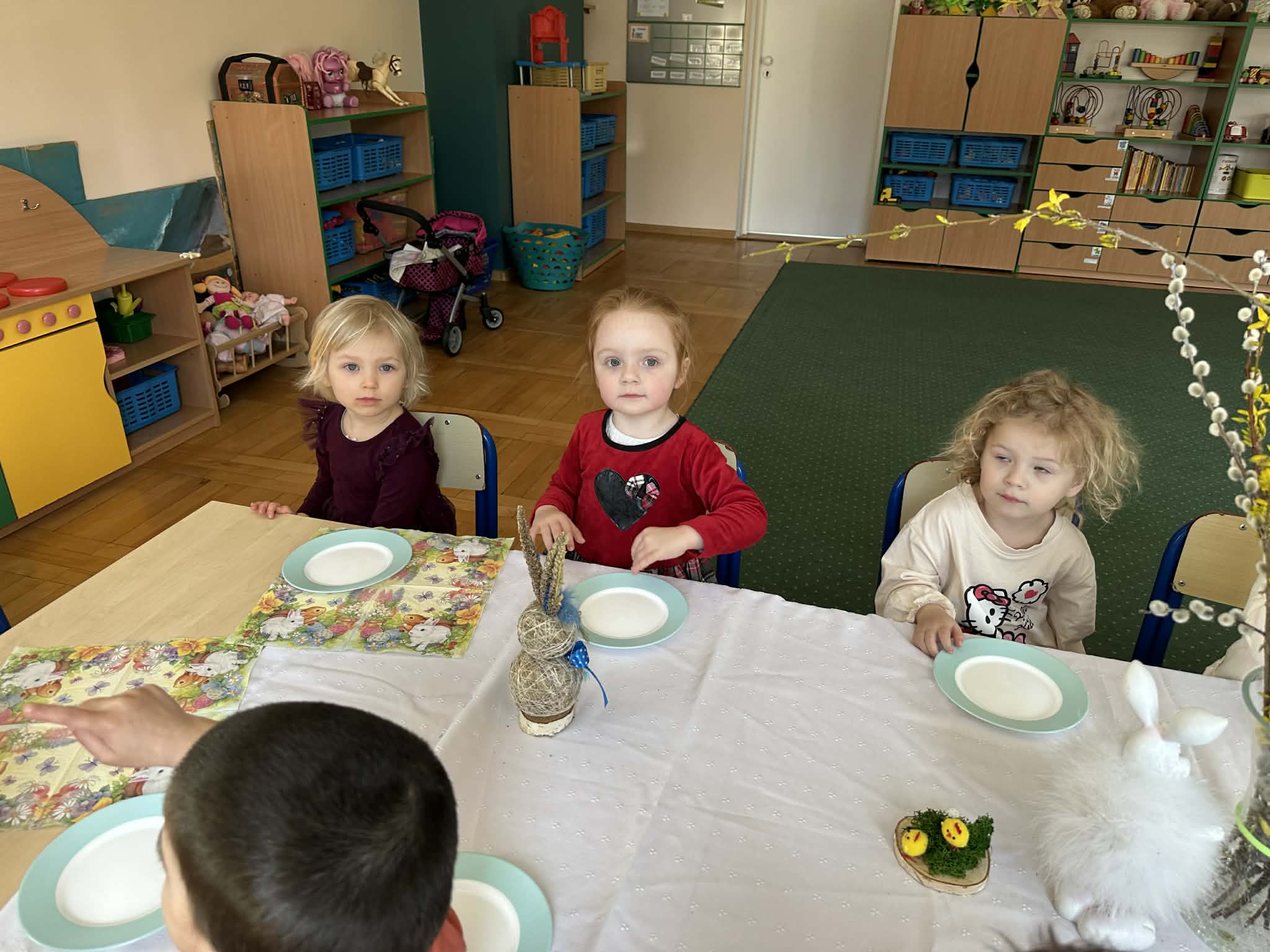 Śniadanie Wielkanocne utworzone przez d.jekel@przedszkolepobiedziska.pl | kwi 8, 2026 | Aktualności W środę, już tradycyjnie, zasiedliśmy do Śniadania Wielkanocnego. Po śniadaniu przykicali do nas goście i zostawili małe podarunki:)