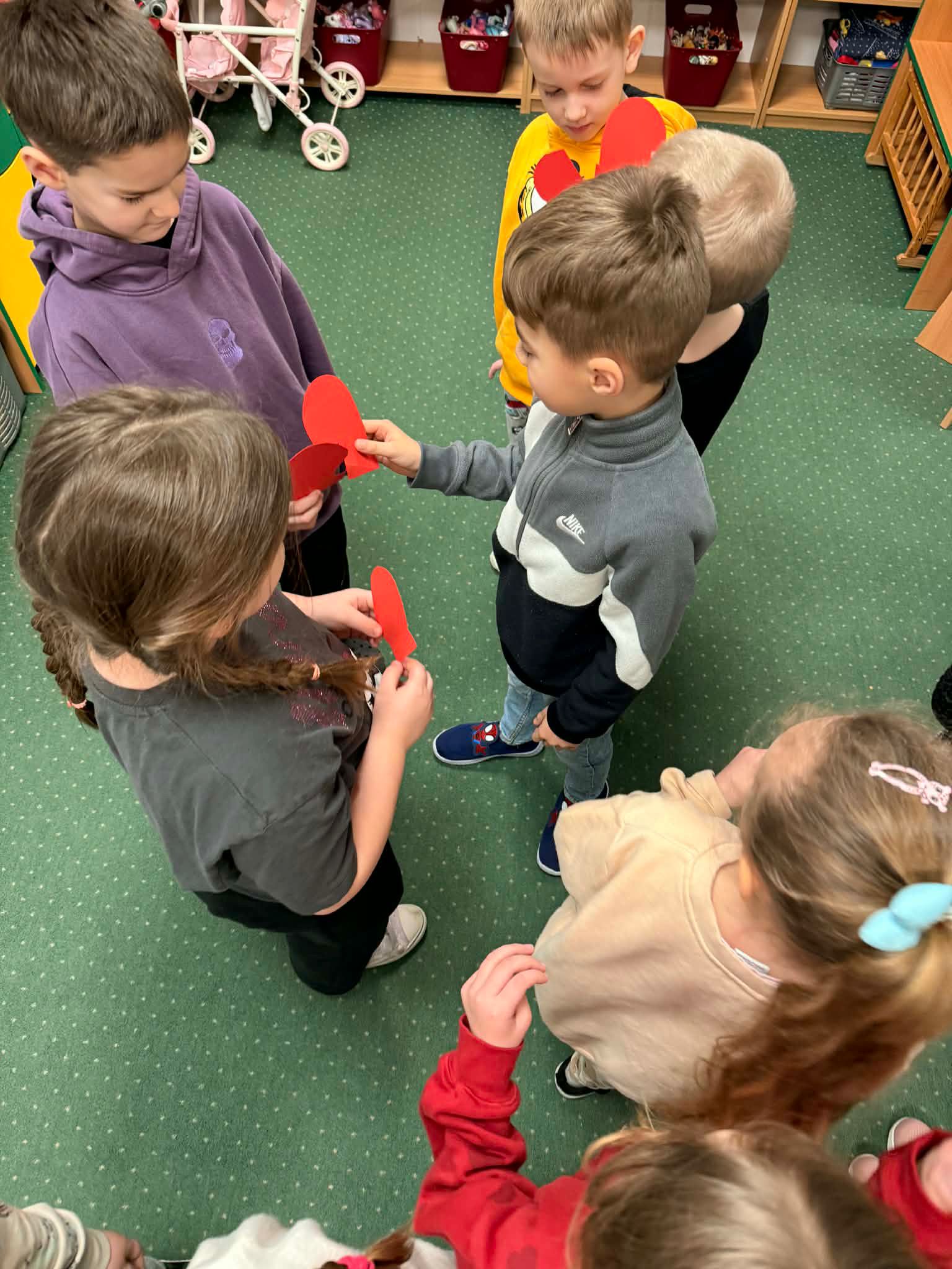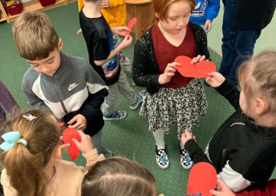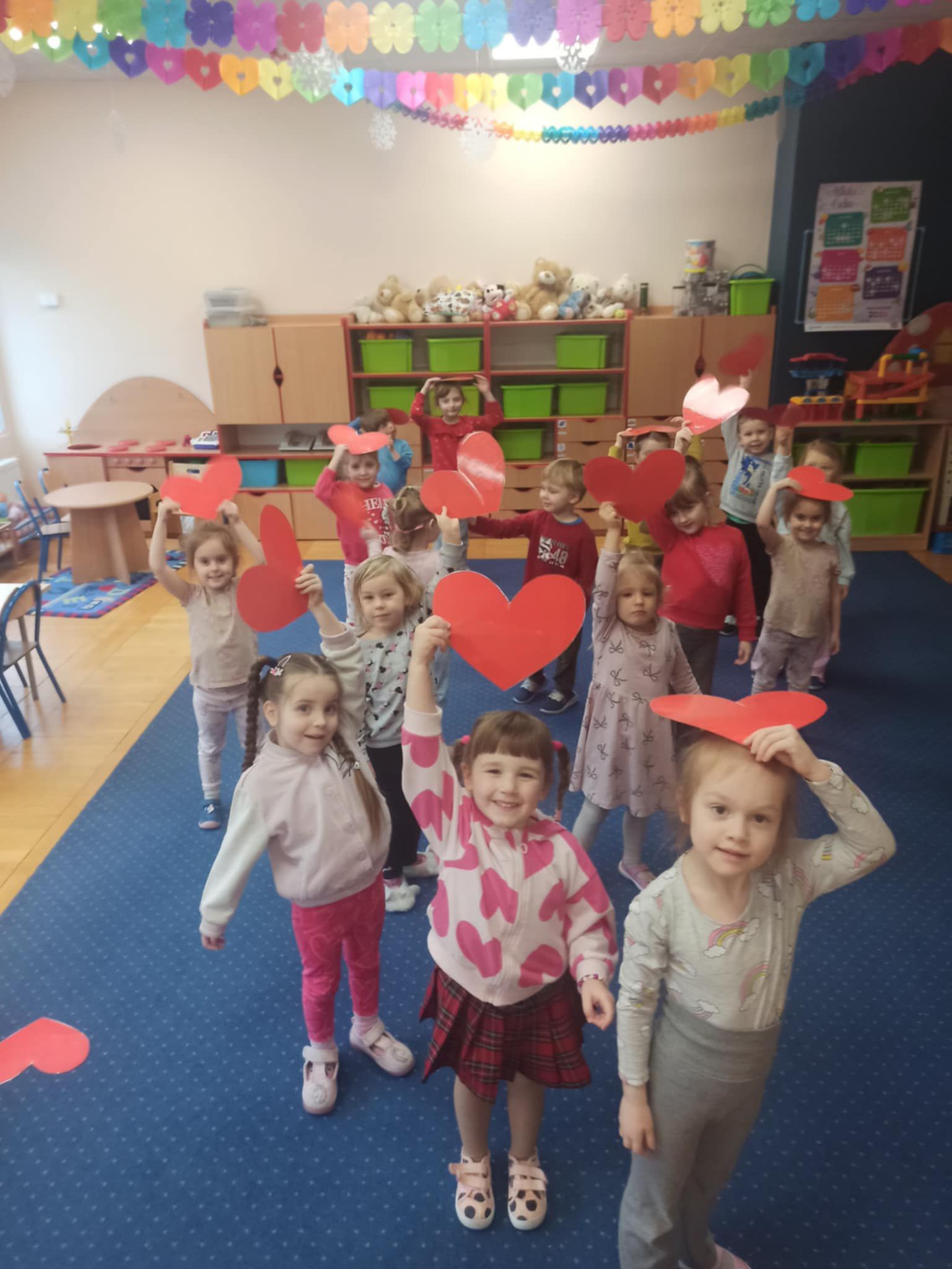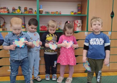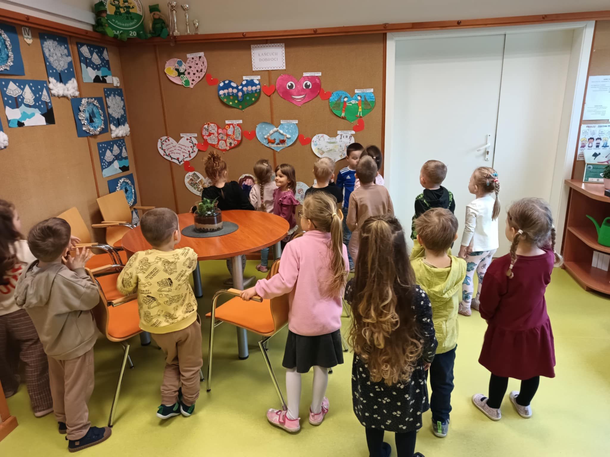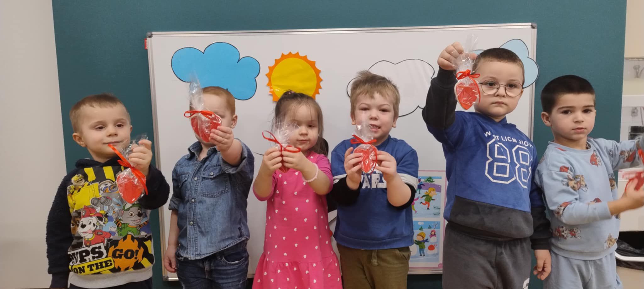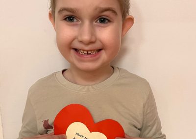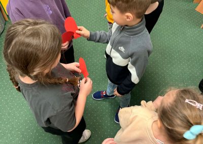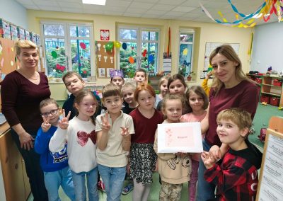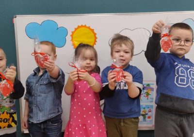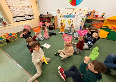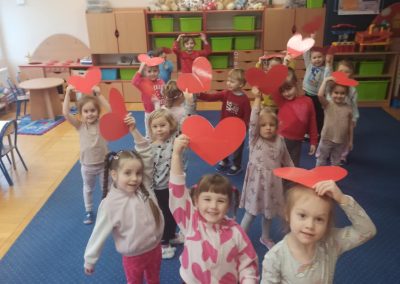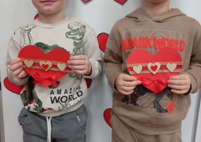 Z okazji Walentynek zorganizowana została akcja „Dzielimy się dobrocią”. W tym dniu dzieci otrzymały serduszka przygotowane przez kolegów i koleżanki z innych grup. Jest to symboliczny gest życzliwości, który ma na celu wzmacnianie pozytywnych relacji, koleżeństwa oraz empatii. W holu przedszkola znajduje się również „Łańcuch Dobroci” – prace plastyczne wykonane przez każdą grupę, przedstawiające dobre uczynki i sposoby okazywania sobie wzajemnej życzliwości. Zachęcamy do wspólnego obejrzenia wystawy.