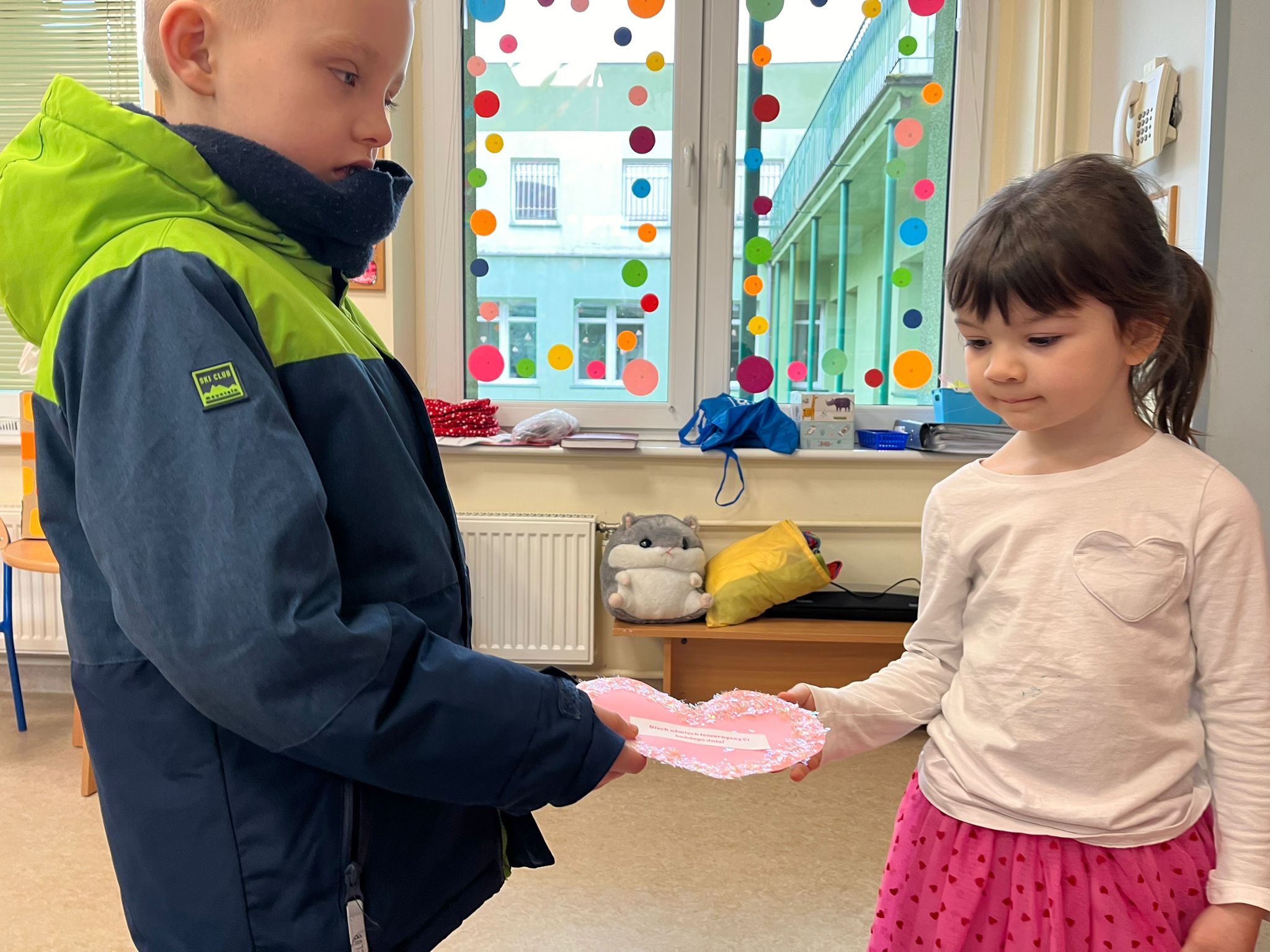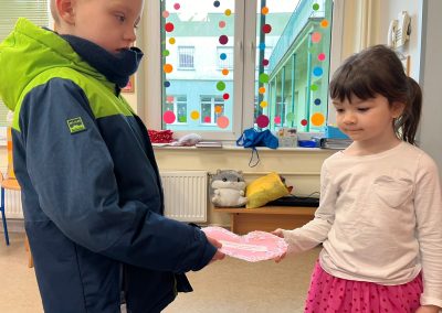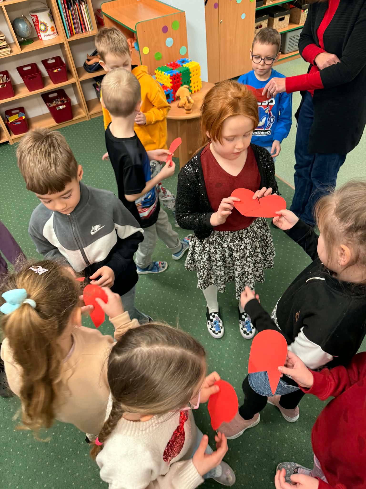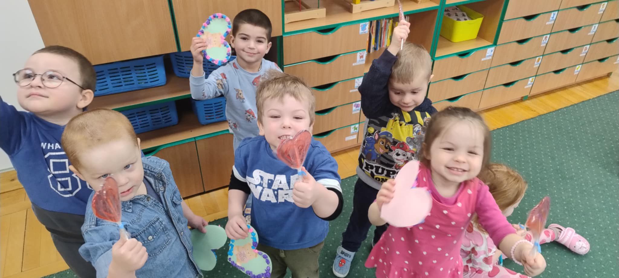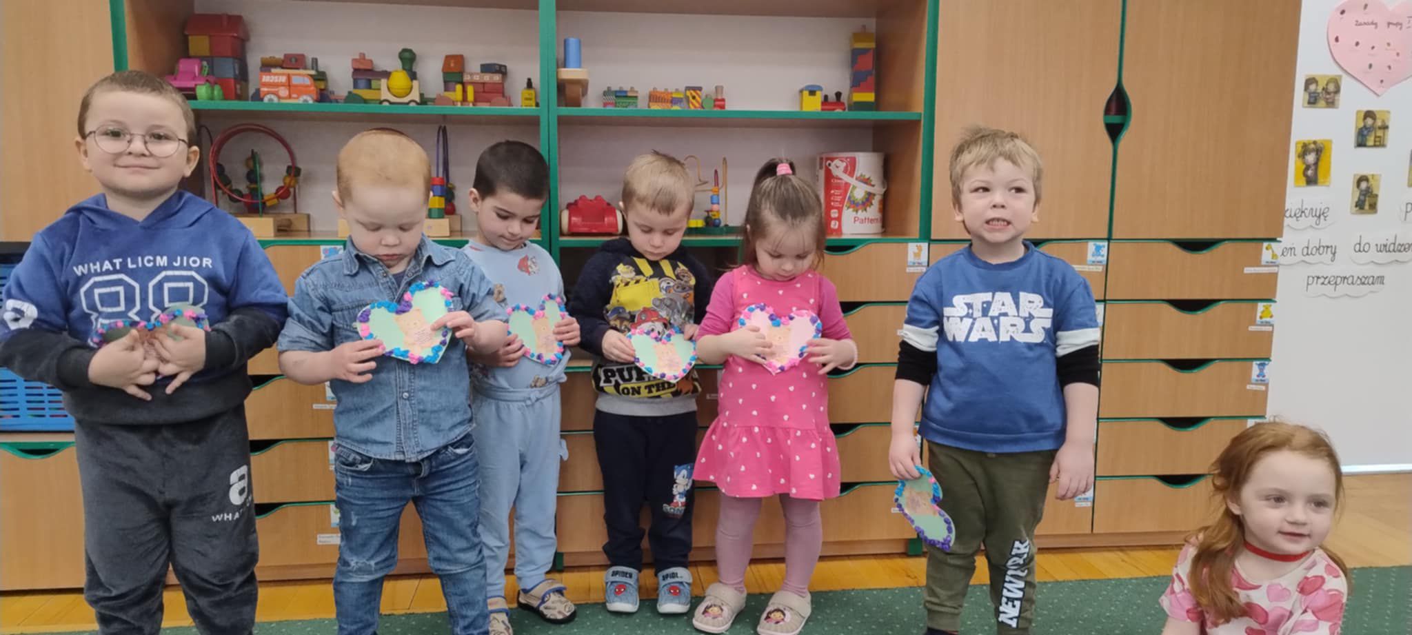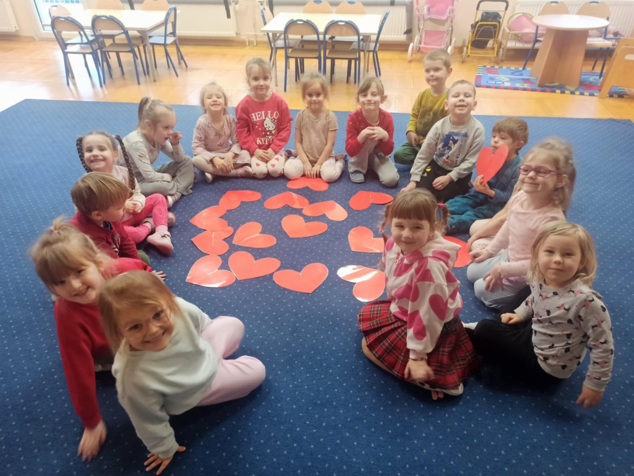 Z okazji Walentynek zorganizowana została akcja „Dzielimy się dobrocią”. W tym dniu dzieci otrzymały serduszka przygotowane przez kolegów i koleżanki z innych grup. Jest to symboliczny gest życzliwości, który ma na celu wzmacnianie pozytywnych relacji, koleżeństwa oraz empatii. W holu przedszkola znajduje się również „Łańcuch Dobroci” – prace plastyczne wykonane przez każdą grupę, przedstawiające dobre uczynki i sposoby okazywania sobie wzajemnej życzliwości. Zachęcamy do wspólnego obejrzenia wystawy.