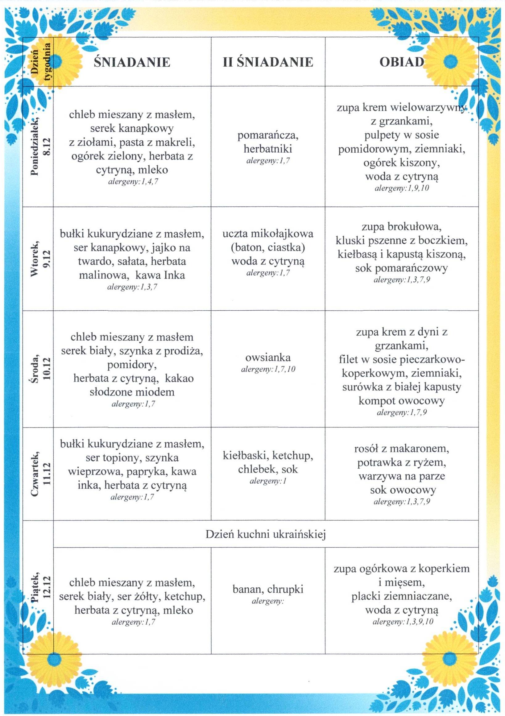 Zastrzegamy sobie prawo do zmian w jadłospisie.